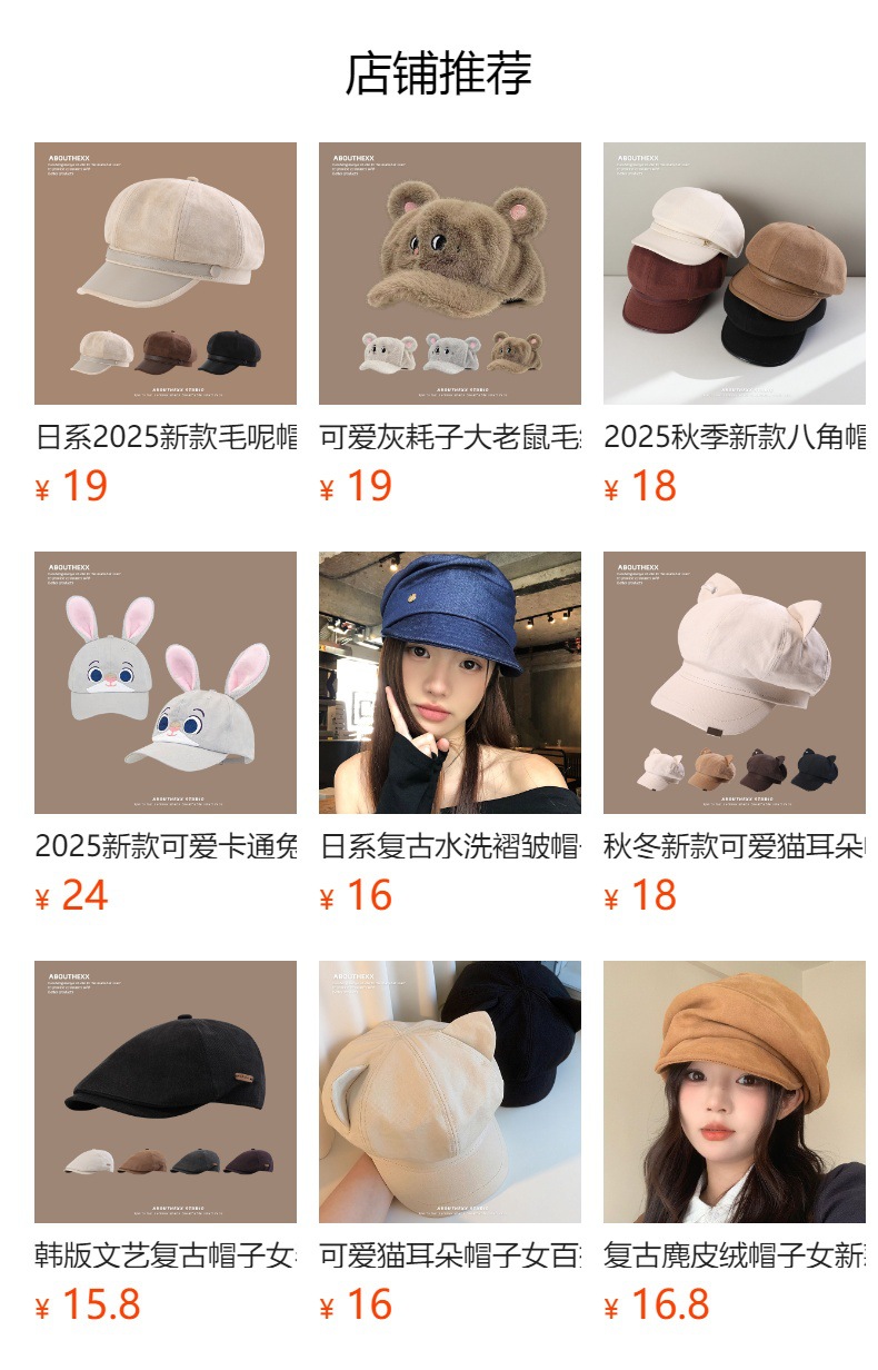 复古时尚前进帽女秋冬季日系文艺贝雷帽韩版百搭显脸小鸭舌帽子潮
