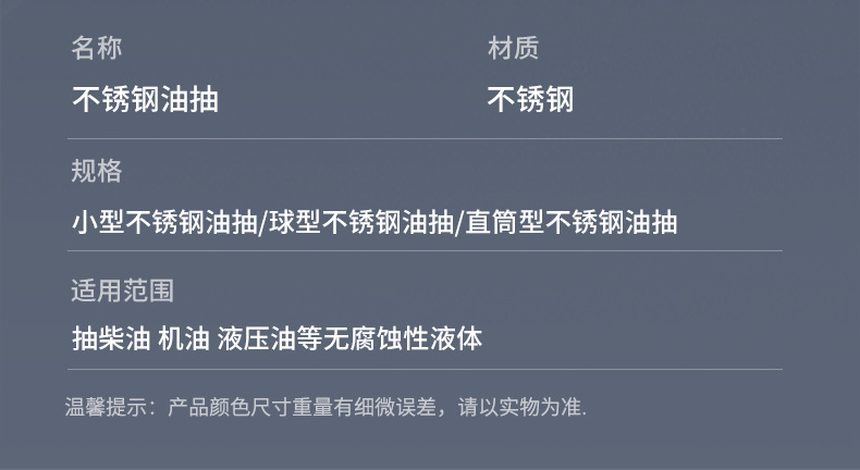 规格 小型不锈钢油抽,球型不锈钢油抽,直筒型不锈钢油抽