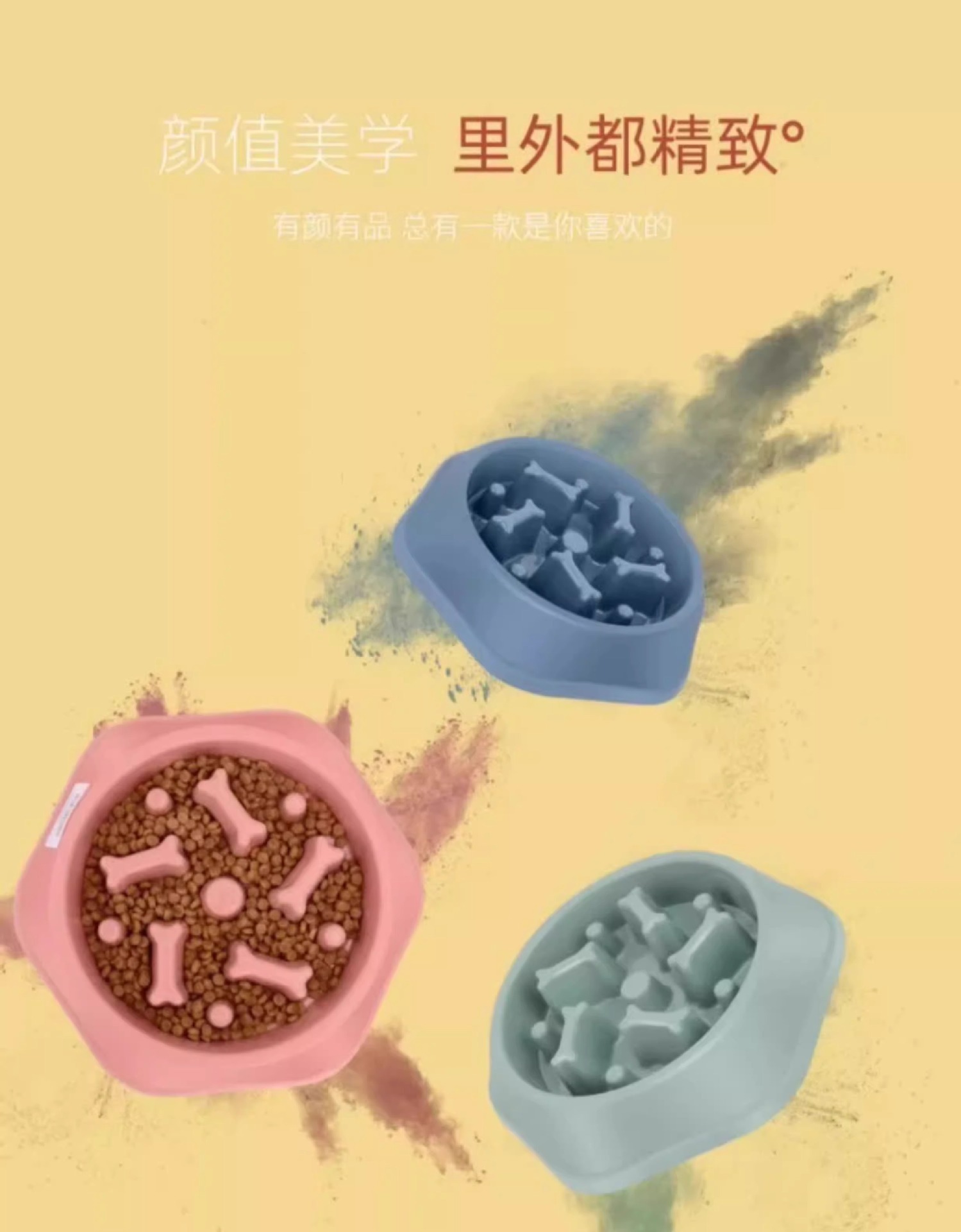规格 宠物慢食碗-锭蓝色-1个,宠物慢食碗-森林绿-1个,宠物慢食碗-秋叶黄-1个,宠物慢食碗-炫酷灰-1个
