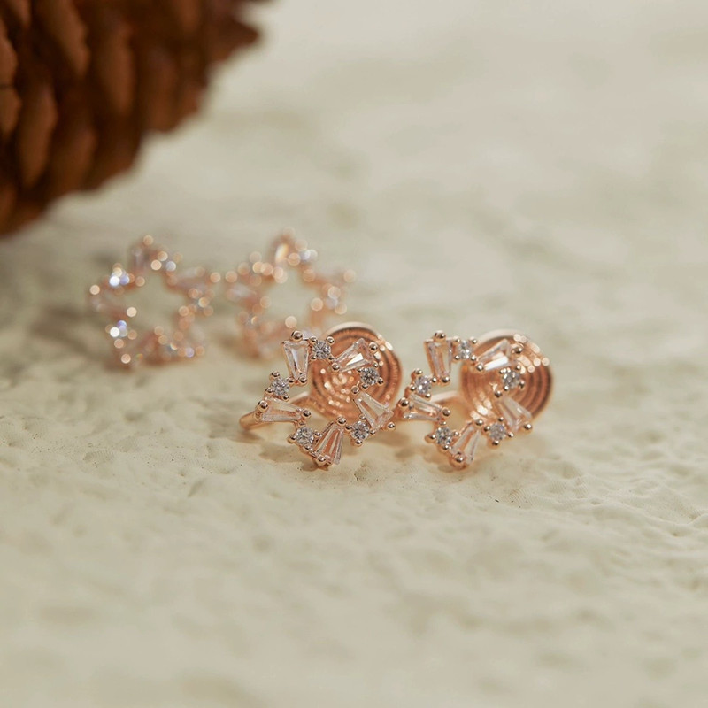 スタージルコン925イヤリング 女性用 甘くて繊細な五芒星イヤリング ノンホールピアス ダイヤモンド付き