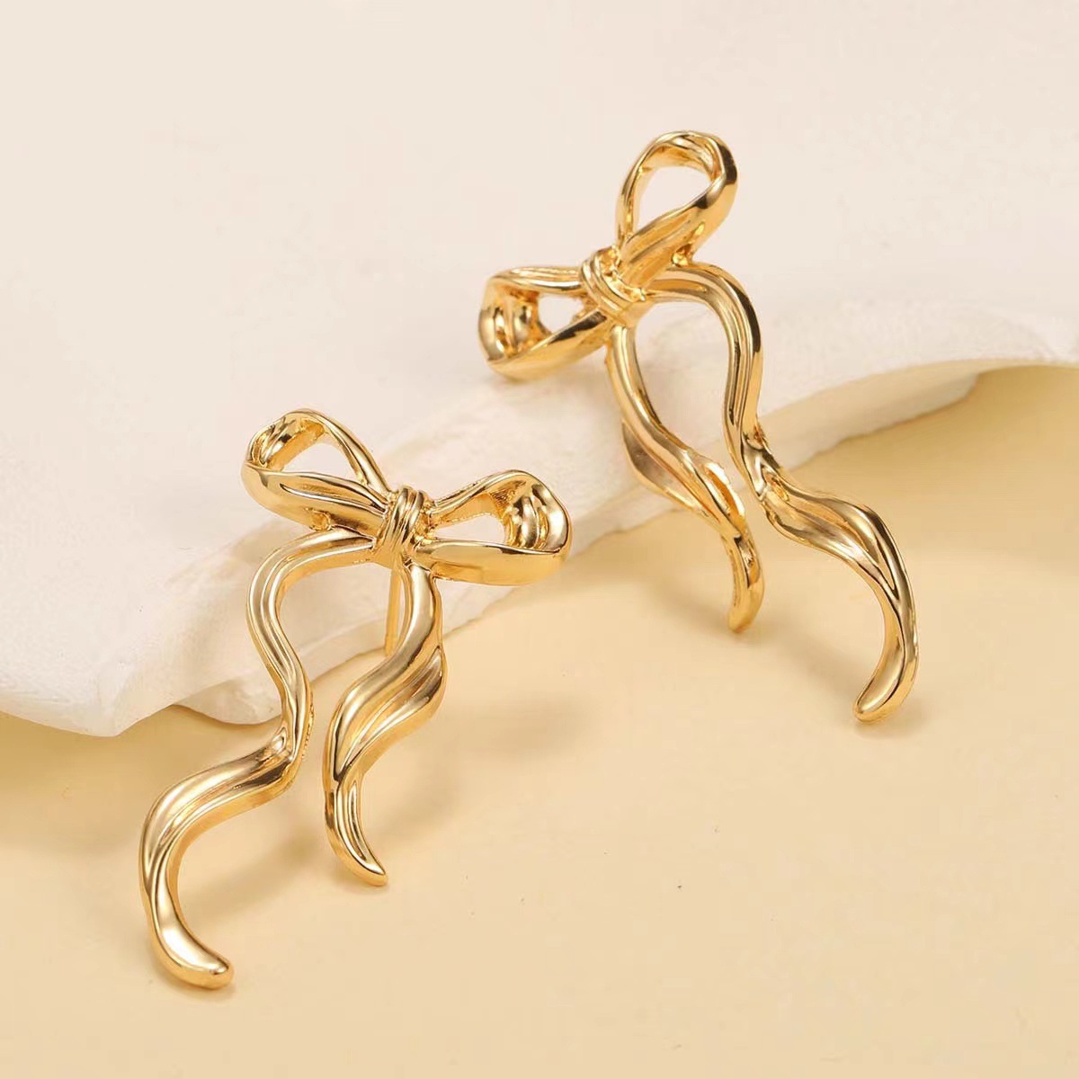 クロスボーダーファッションリボンリボンイヤリングキュートで甘い不規則なイヤリング赤いスプレーペイントリボンイヤリング卸売