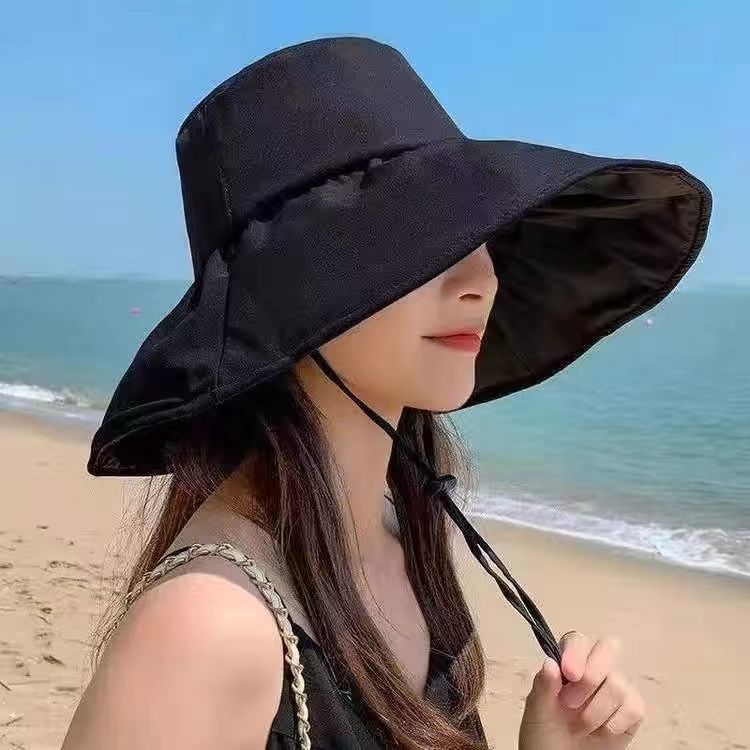 UV黒ゴム漁師帽日焼け止め日よけ帽子子供の夏の顔を隠して紫外線を防ぐことができます。
