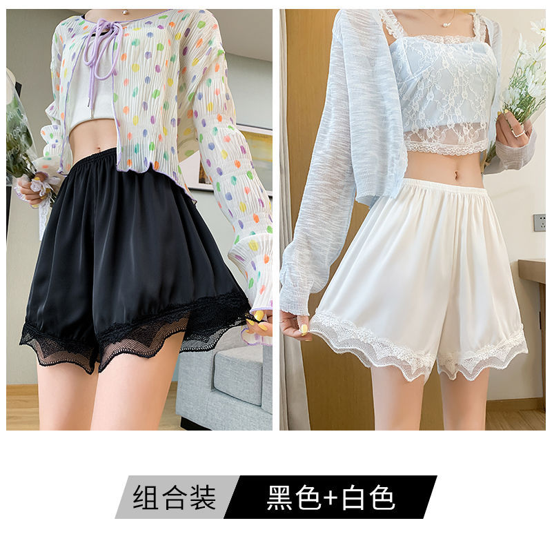 露出防止アイスシルク安全パンツ 女性用 2025年夏 薄手レース ノンロールエッジ セーフティパンツ 大きいサイズ パジャマ セクシーレース