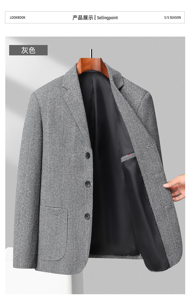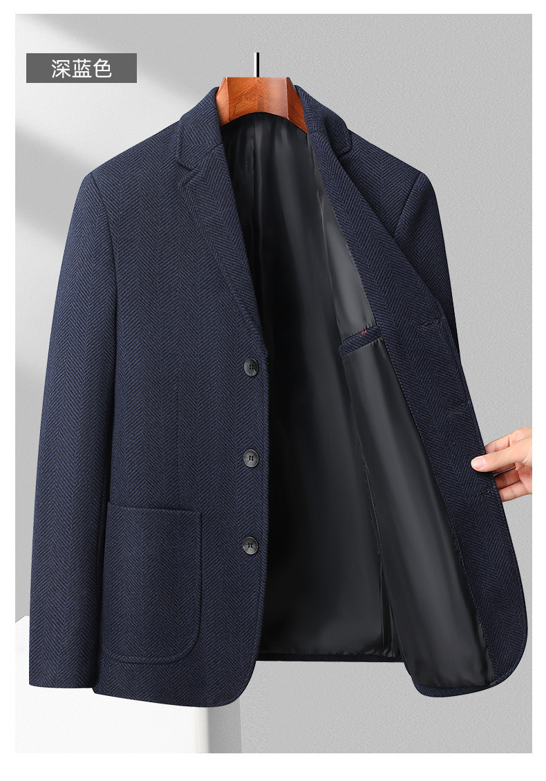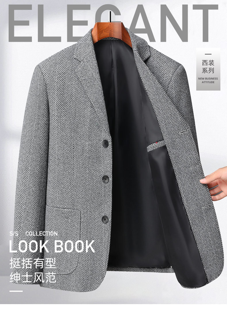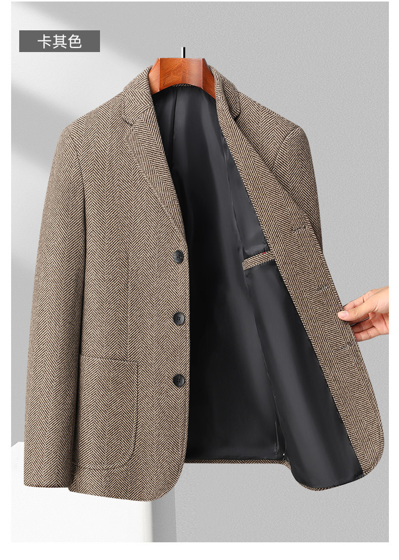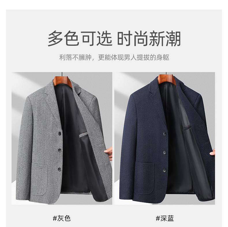 爆発的な春と秋のカジュアルスーツの男性秋冬の新しい中年の毛のスーツは春と秋のシングルスーツの上着を修理します。