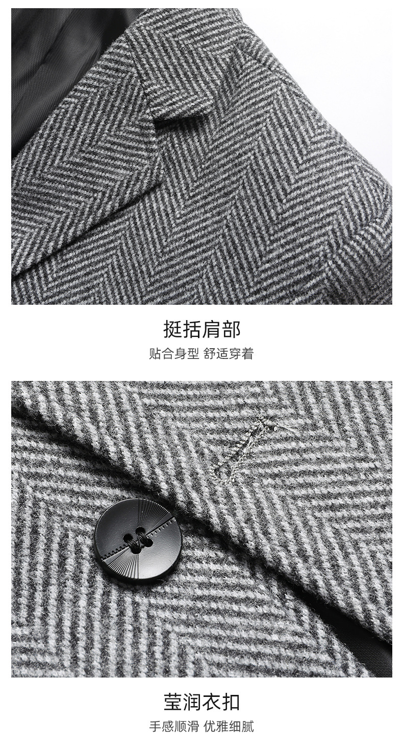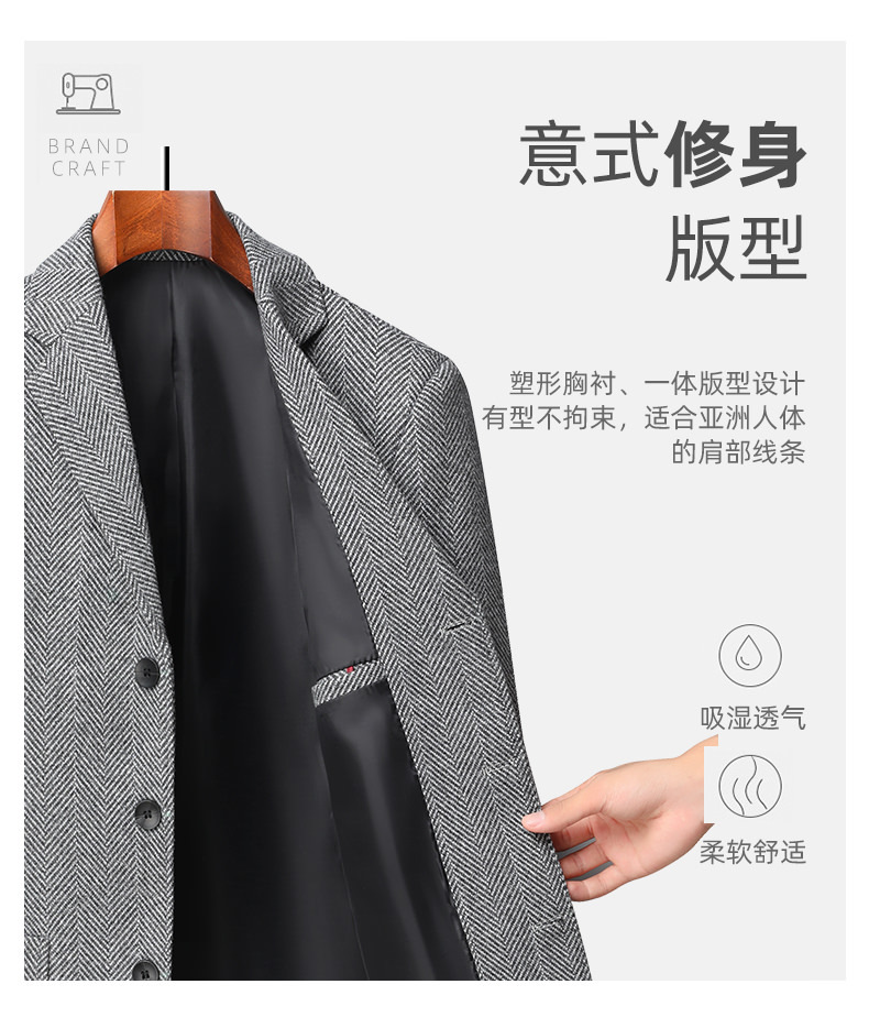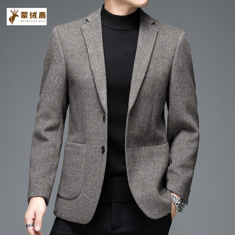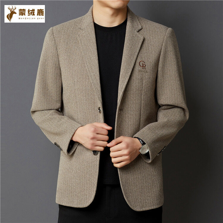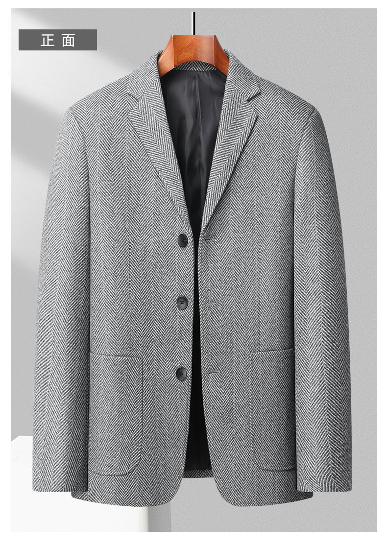爆発的な春と秋のカジュアルスーツの男性秋冬の新しい中年の毛のスーツは春と秋のシングルスーツの上着を修理します。