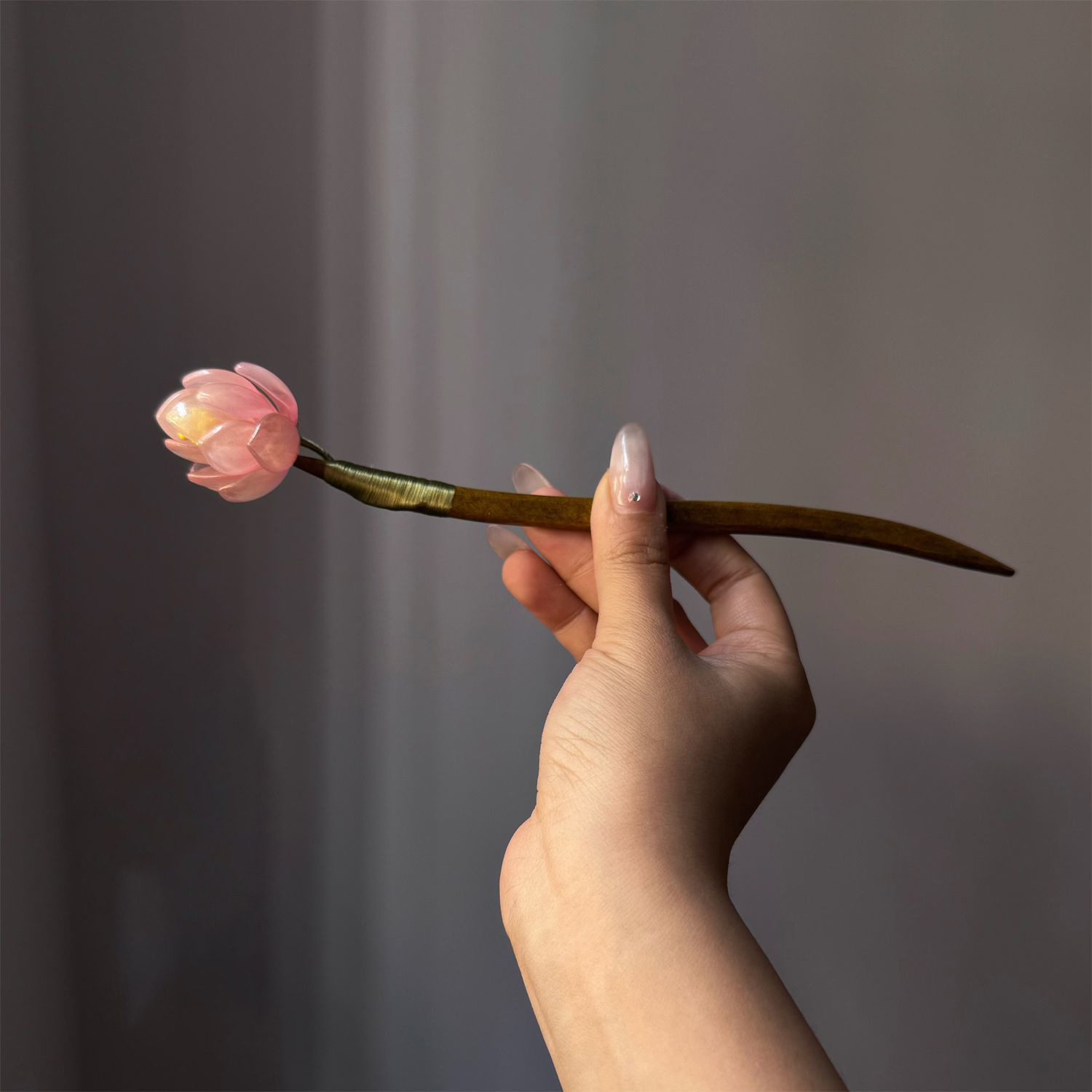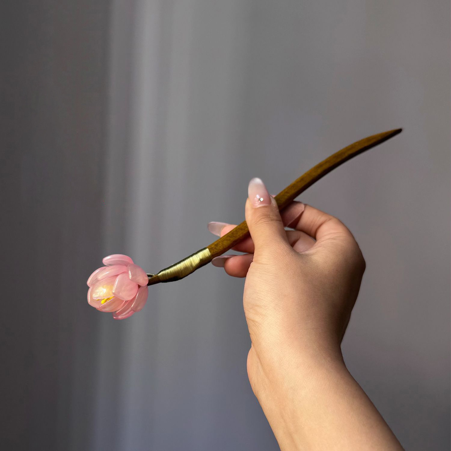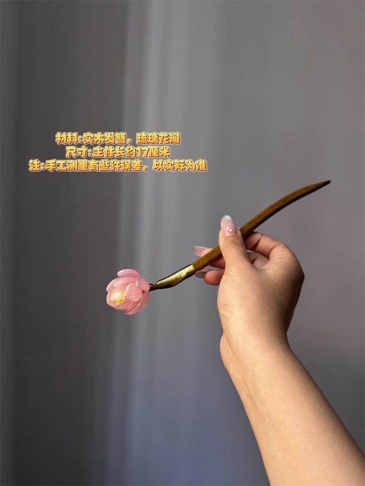 复古新中式小荷花实木发簪古风木质盘发簪子发饰汉服古装配饰