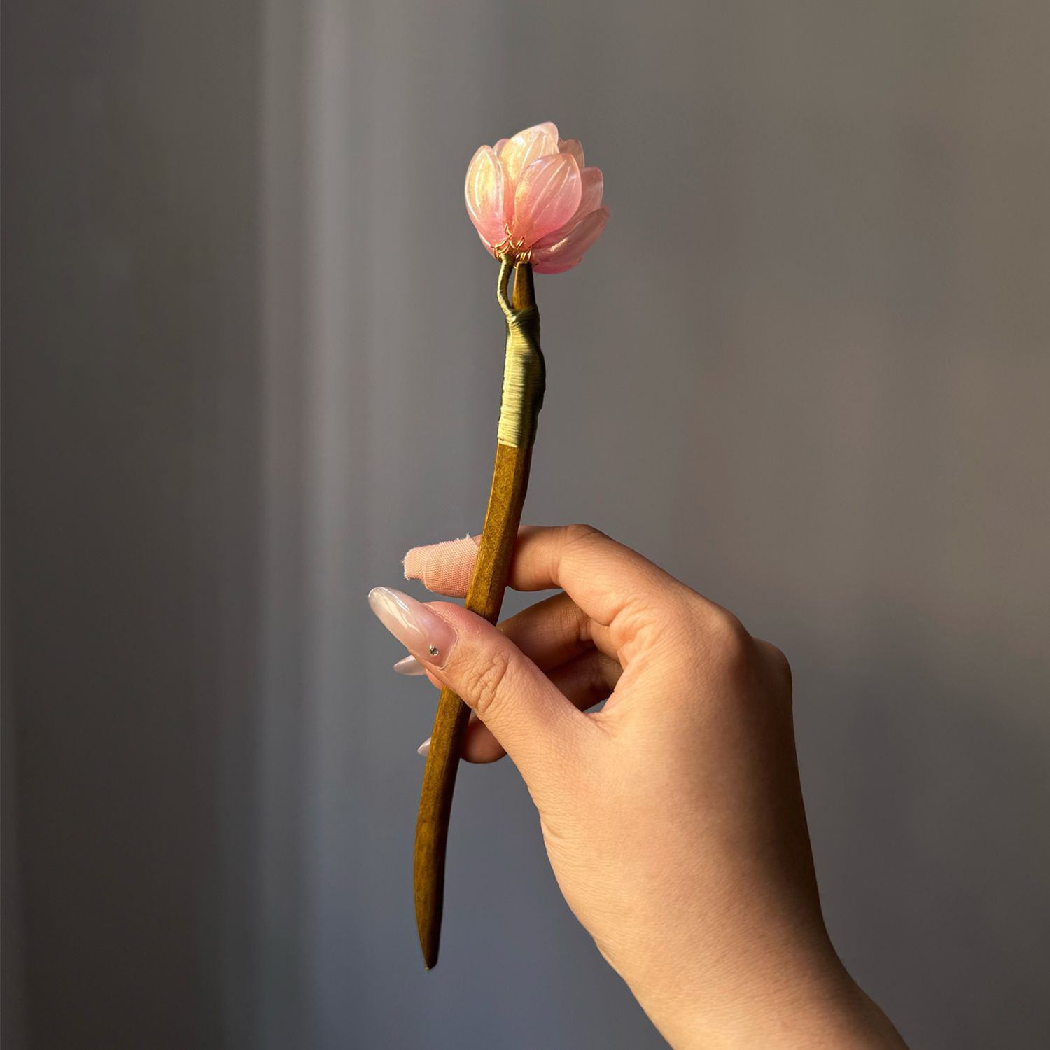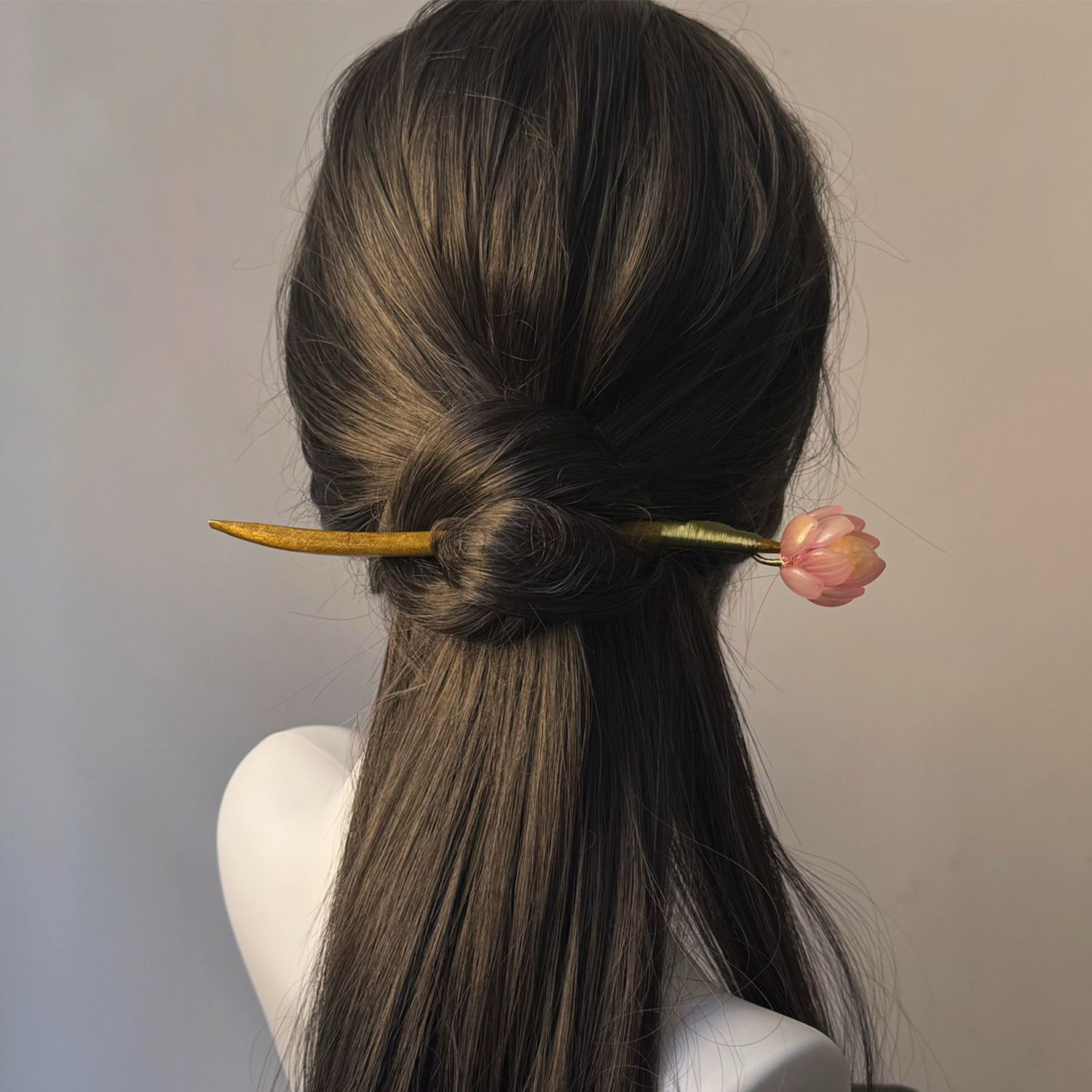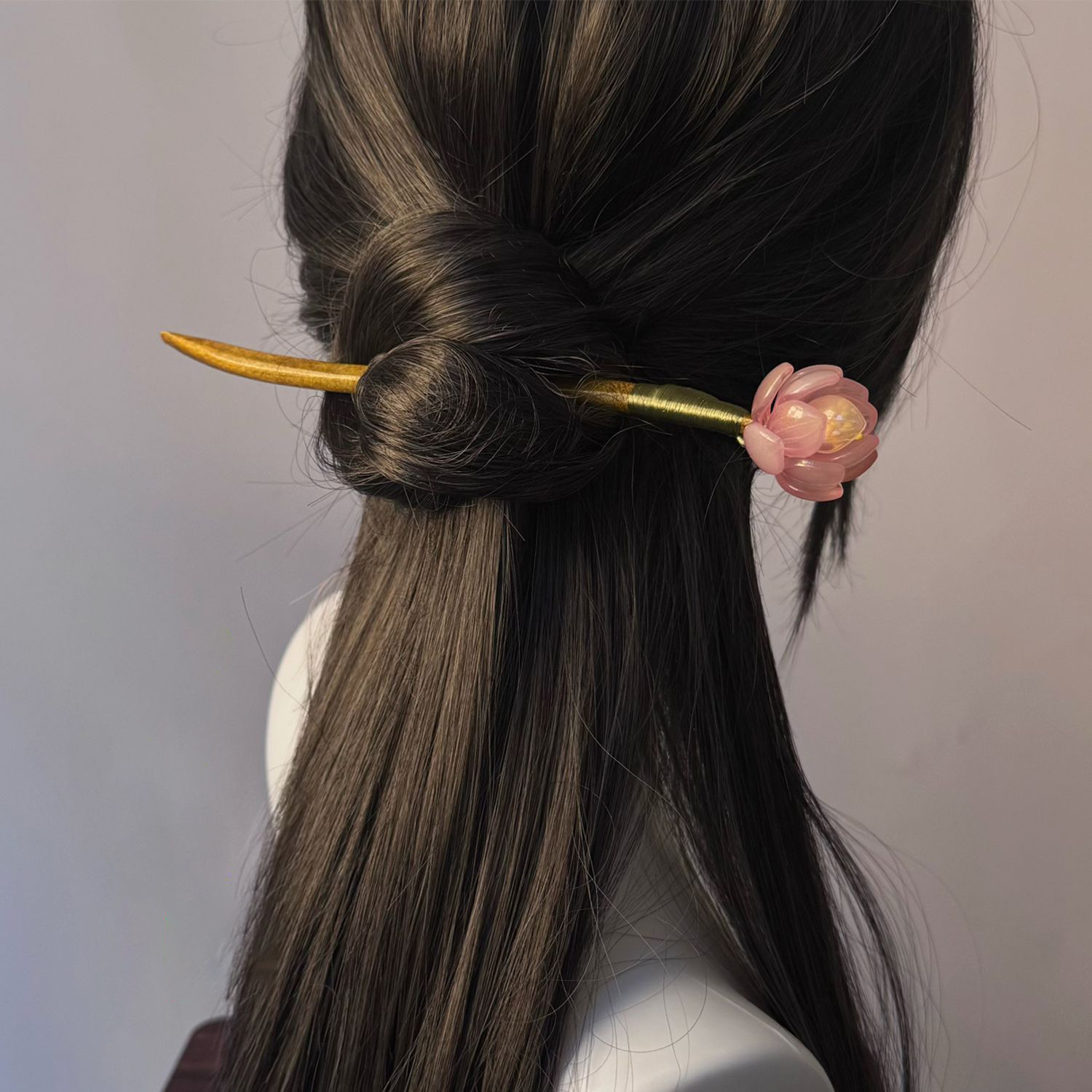 复古新中式小荷花实木发簪古风木质盘发簪子发饰汉服古装配饰