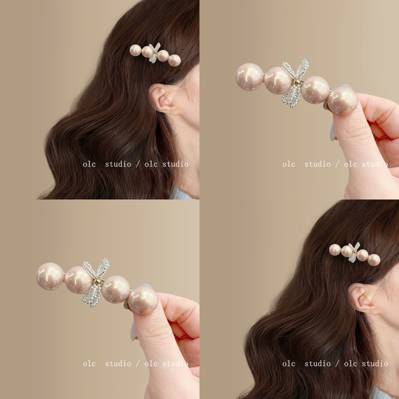 韓国ヒロイン〜軽い高級パールヘアピンサイドクリップ甘いレトロカモノハシクリップリボン旅行ヘアピン女性用