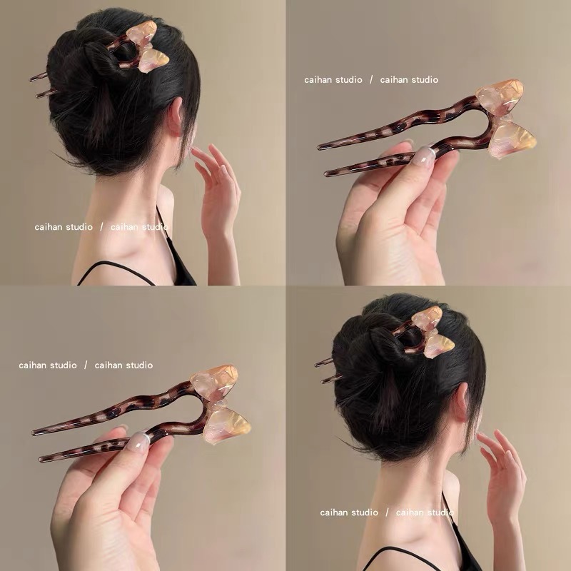 フランスのレトロな酢酸弓 U 字型ヘアピン女性のハイエンドヘアピン新しい夏のボールヘッドアーティファクトヘアアクセサリー