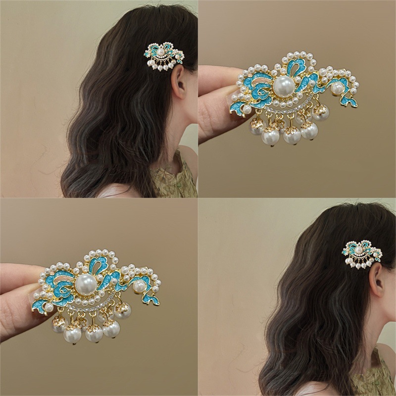 定番モノローグ! レトロ焼きブルーパールヘアクリップ! 新しい中国式の前髪は気質を挟みます。