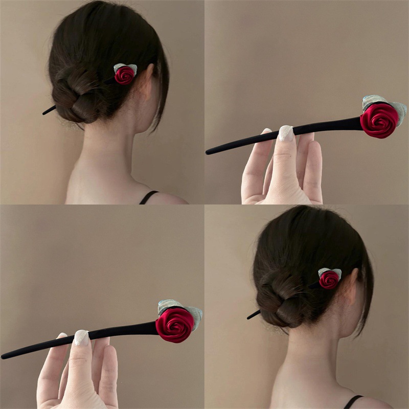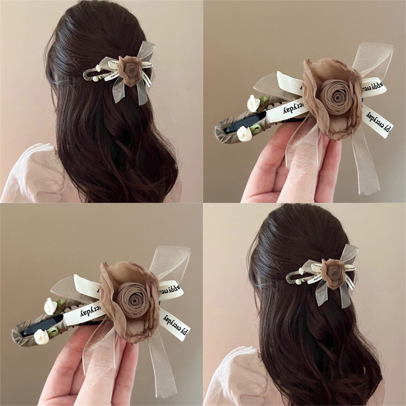 美ラード風乾燥バラ髪クリップ新中国式後頭部一字クリップ高級感半髪花飾り女
