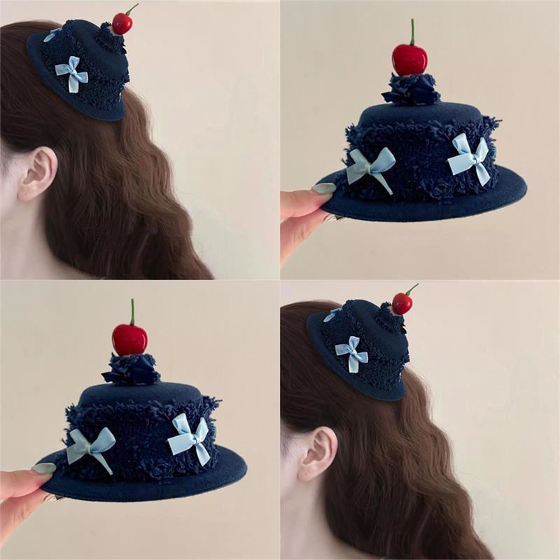 誕生日の帽子の大人の金のろうそくの燃えるさくらんぼのカウボーイの小さいケーキのヘアピンの創意の少女の心は小さい礼帽をいじります。
