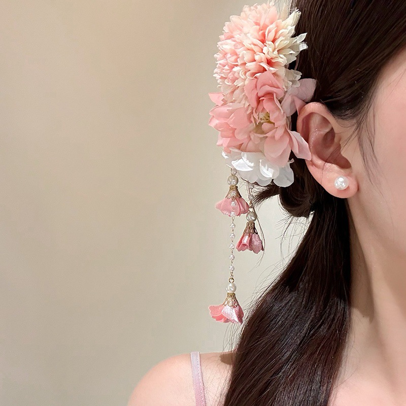 Fandaijia Ren 春の新中国風牡丹リボンタッセルヘアピン女性のスーパーフェアリー雰囲気サイドクリップヘッドドレス