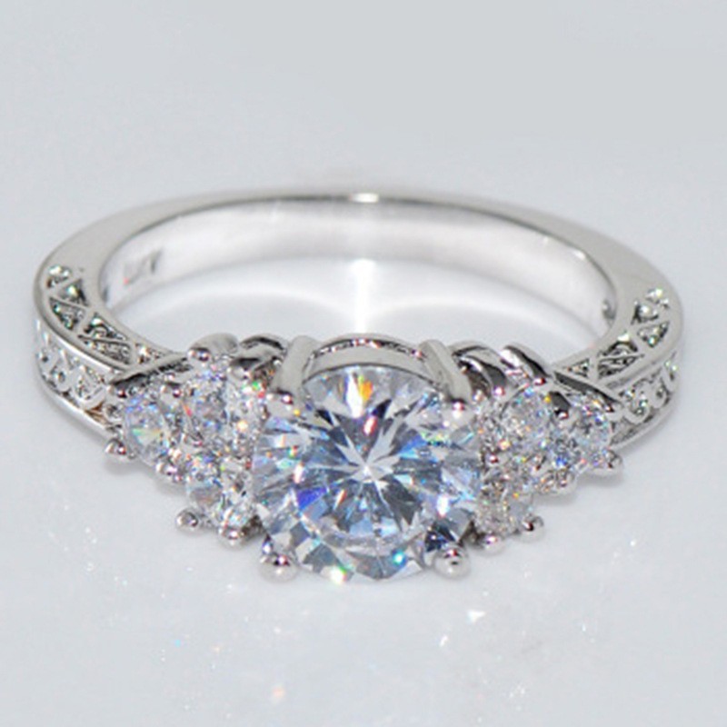 三傑クロスボーダーtemu新型ファッション指輪満ドリルジルコンジュエリー結婚祝いシンプルファッション銀色アクセサリー女