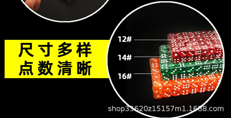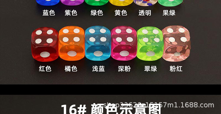 骰子规格 10mm,12mm,14mm,16mm,18mm,颜色可以选择联系客服