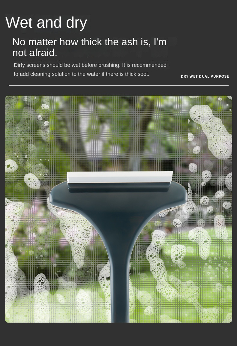 2in1家庭用網戸ブラシ、分解洗浄不要、多機能クリーニングブラシ、ガラス窓掃除ツール、厚手の窓拭き
