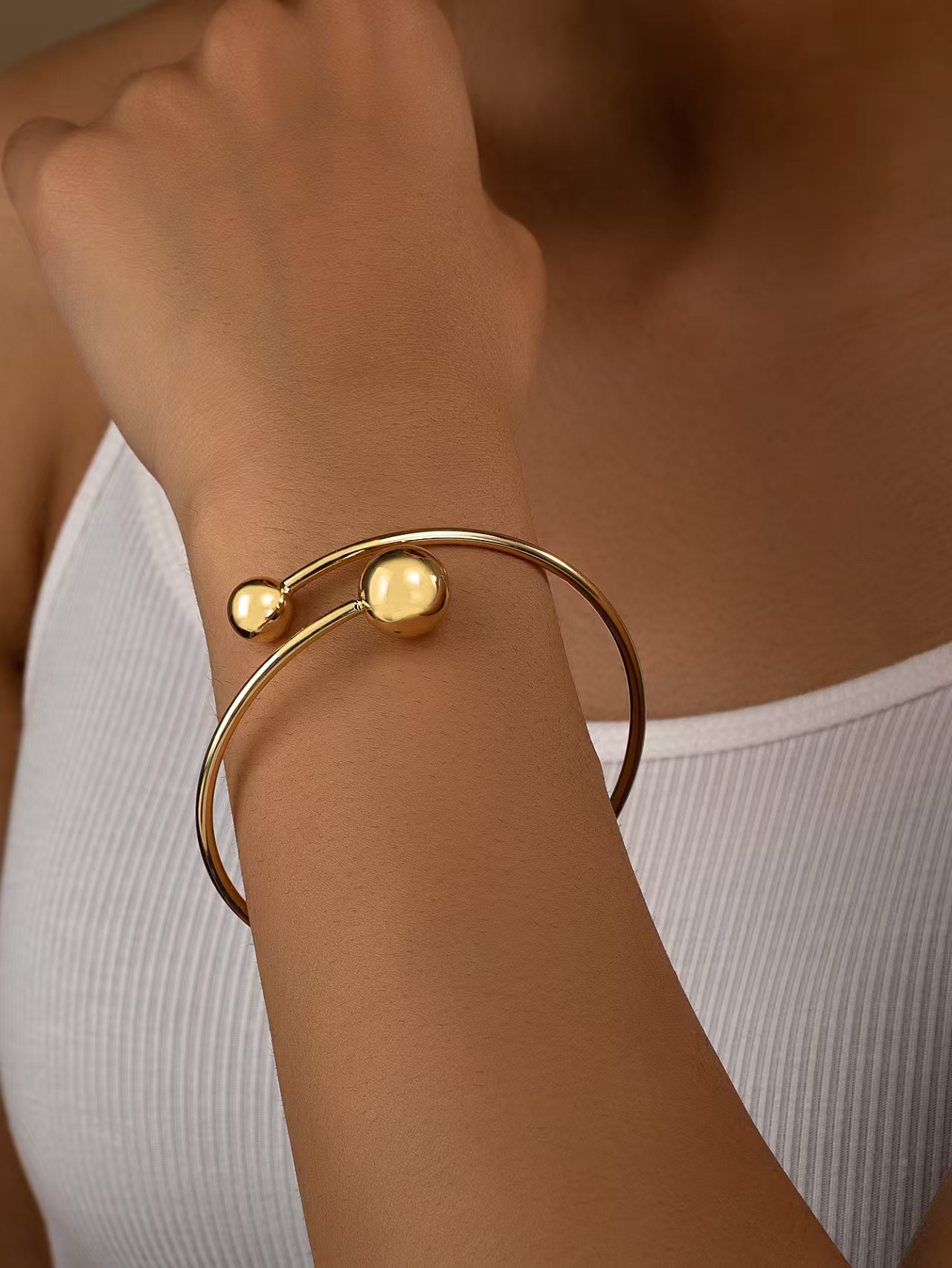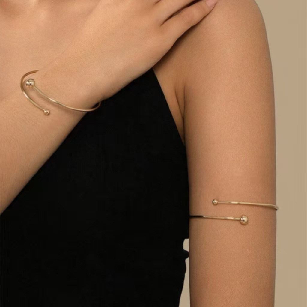 时尚简约开口环形大小球不对称细手镯臂环高级感女首饰开口镯