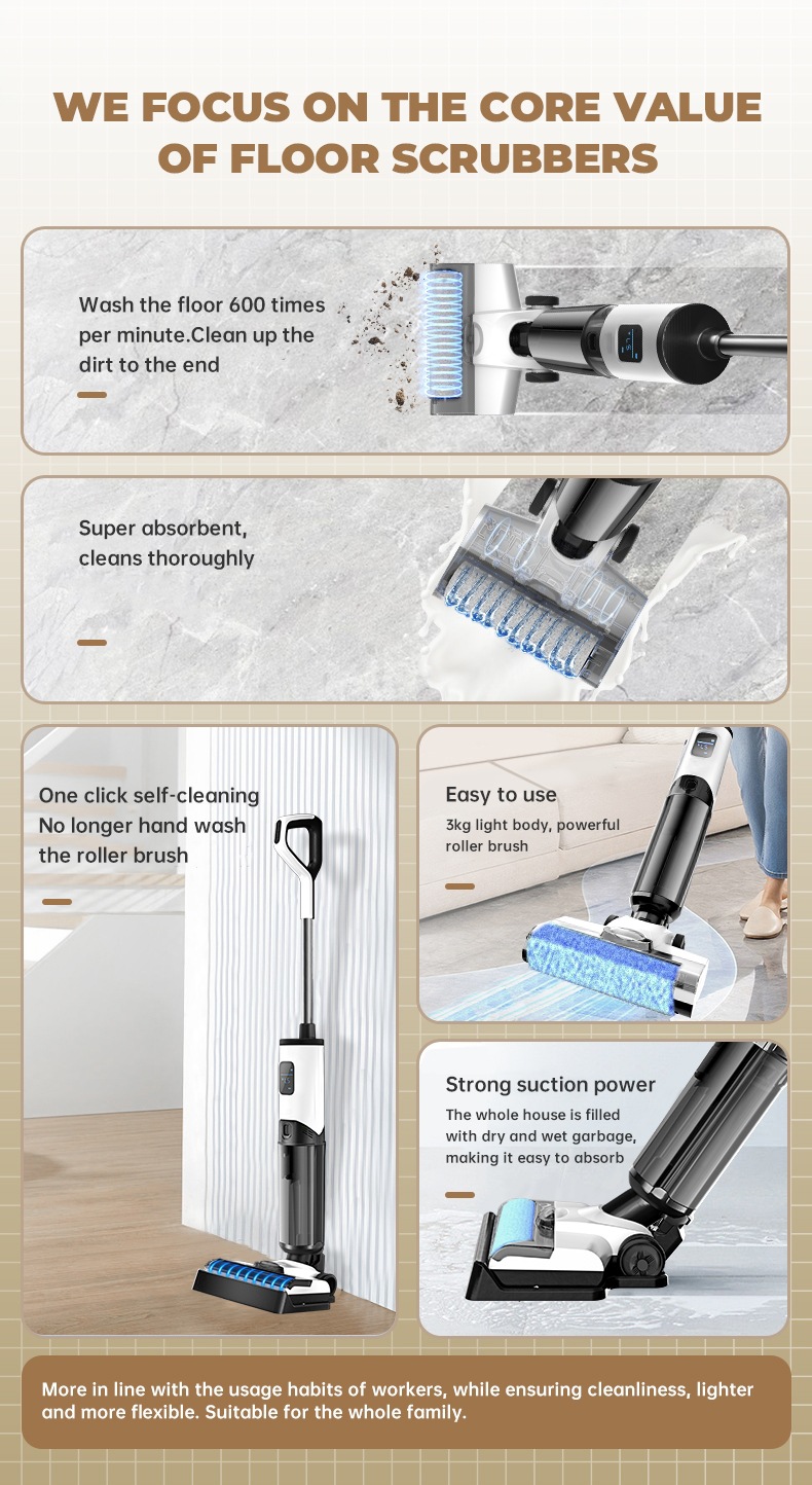 メーカー製フロア洗浄機、乾湿両用モップ、吸引とモップ一体型掃除機、家庭用ワイヤレス電動フロア洗浄機