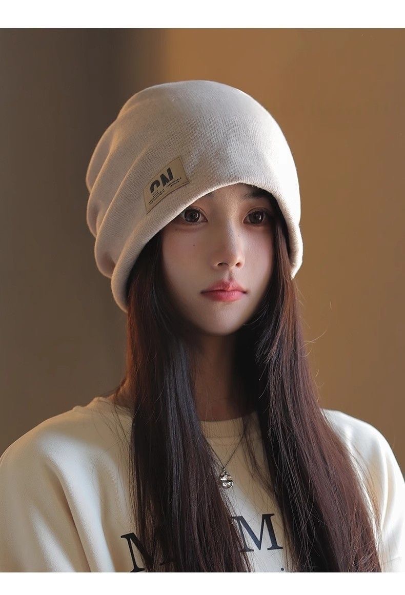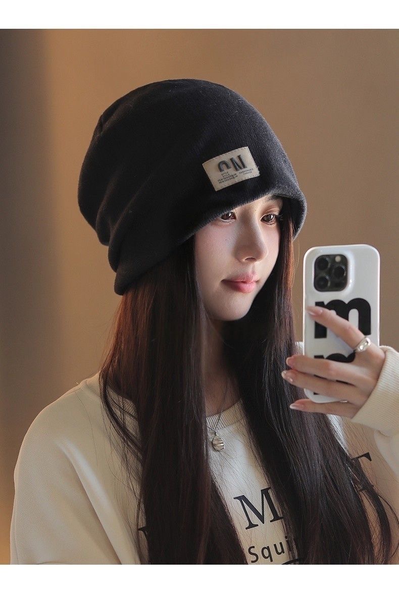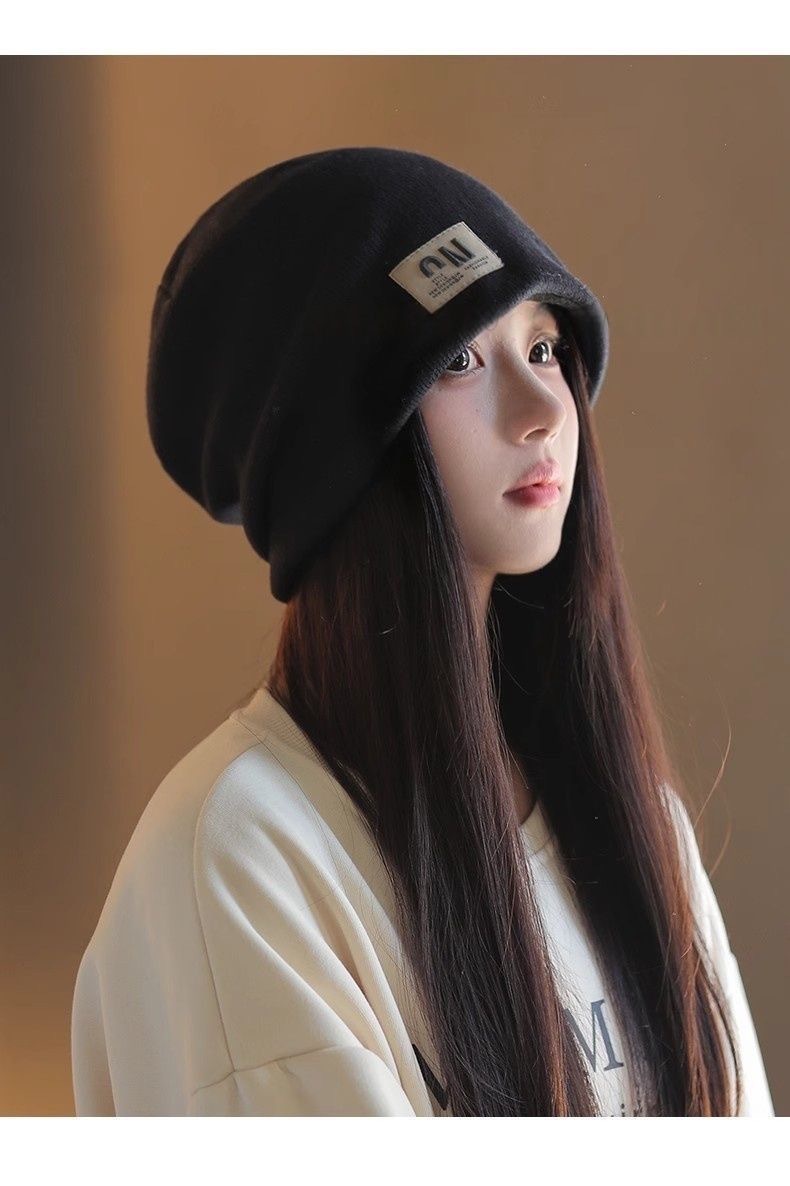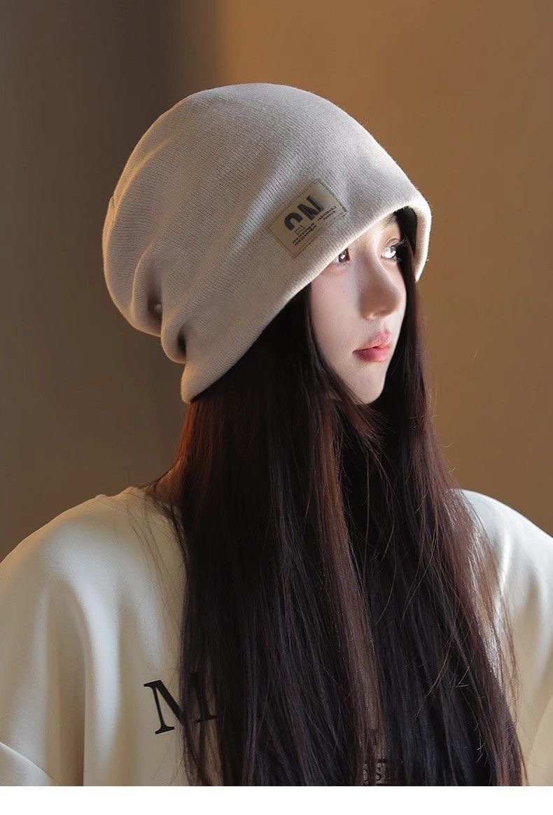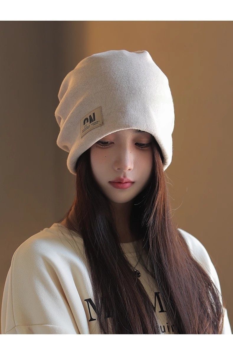 网红堆堆帽女春秋时尚字母产后月子帽日系毛线针织包头帽冬季冷帽