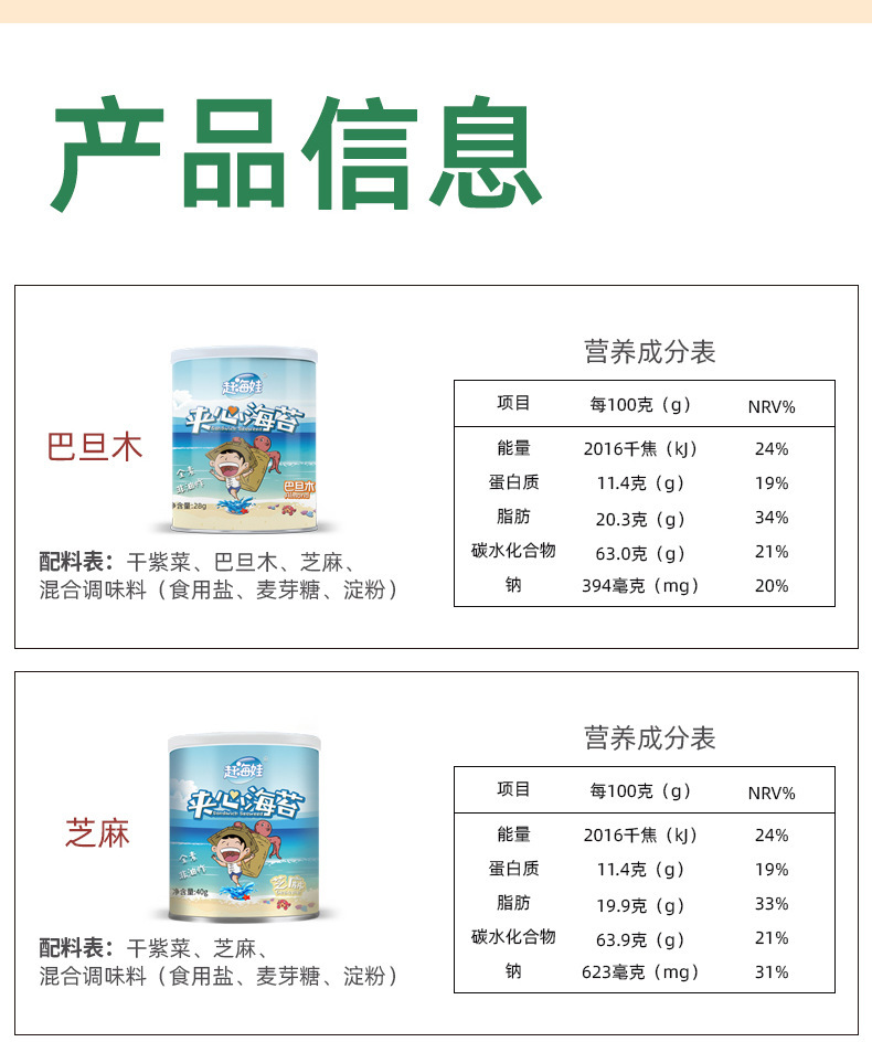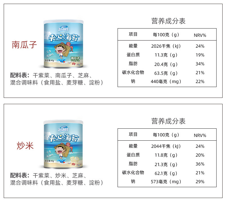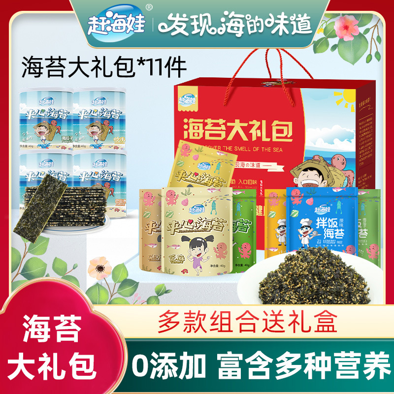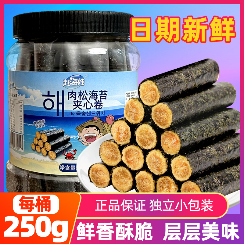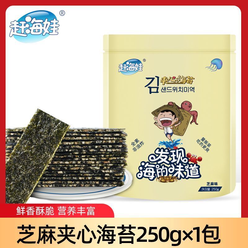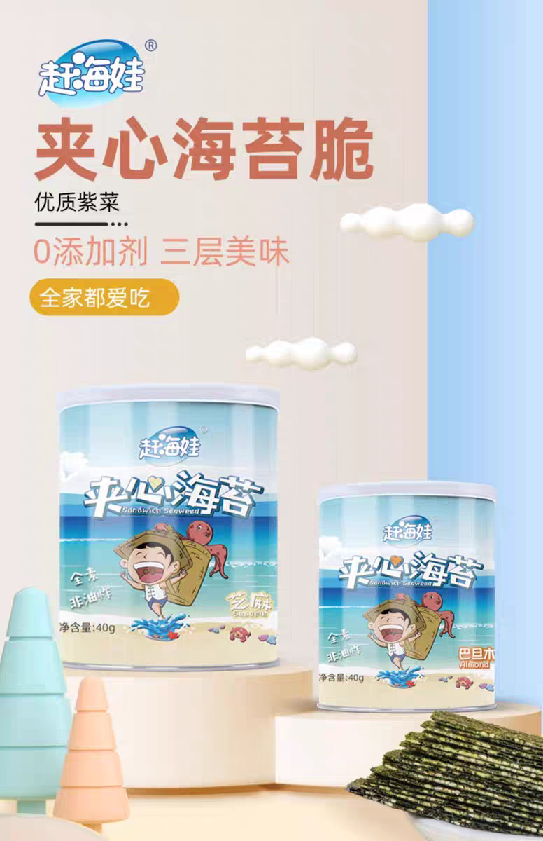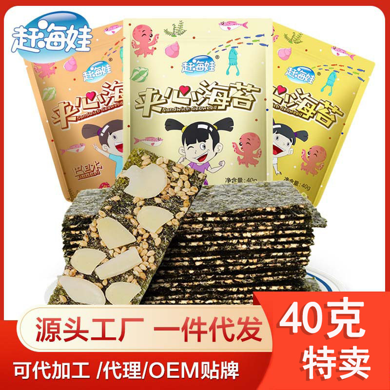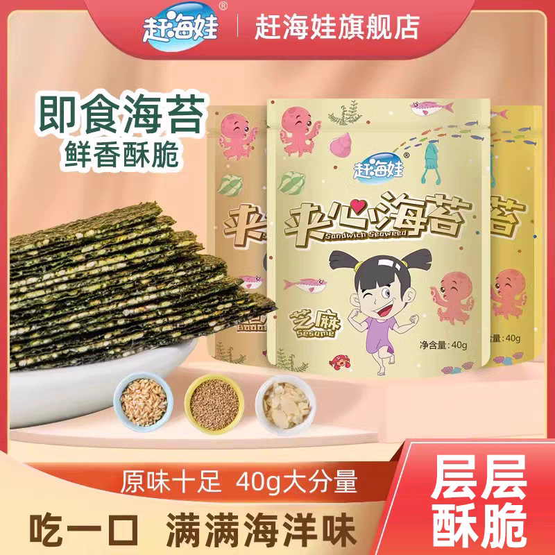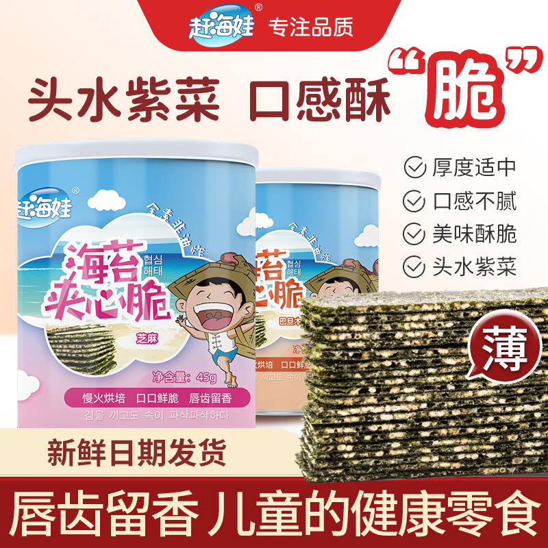 赶海娃芝麻夹心海苔脆罐装40g儿童宝宝解馋零食批发即食夹心海苔