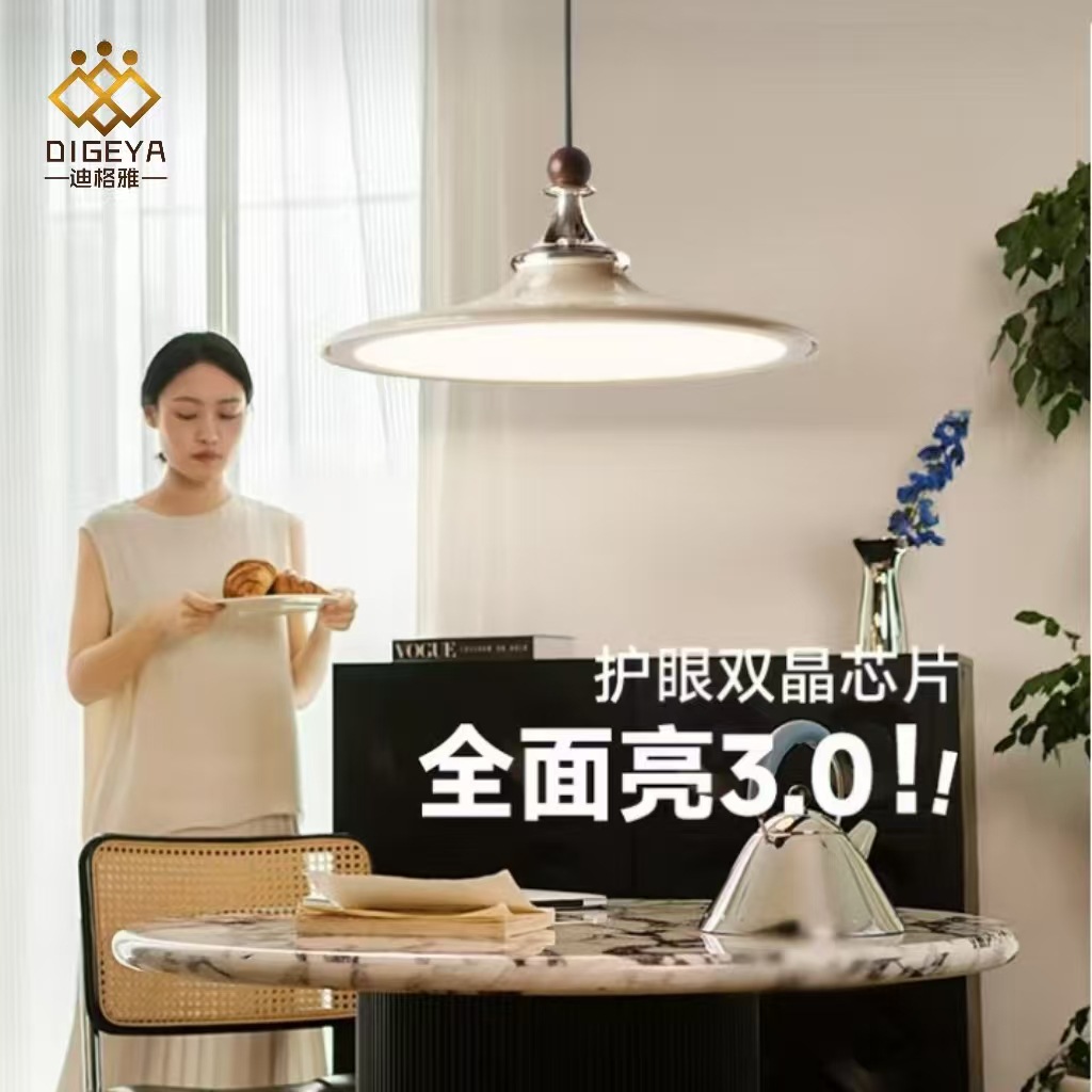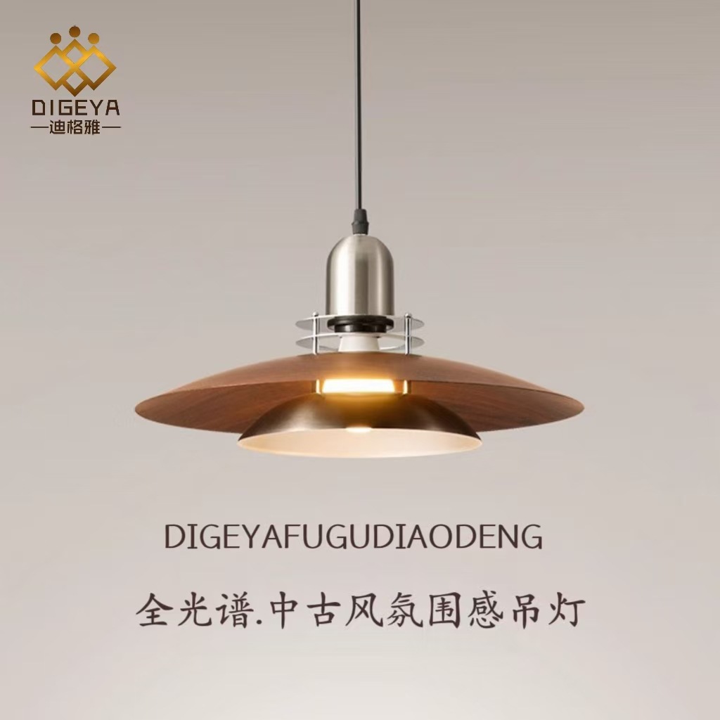 迪格雅中古风包豪斯创意餐厅客厅飞碟吊灯复古胡桃木卧室护眼灯具