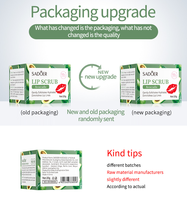 全英語SADOER牛油果唇部スクラブ秋冬保湿唇周唇膏クロスボーダー対外貿易卸売り