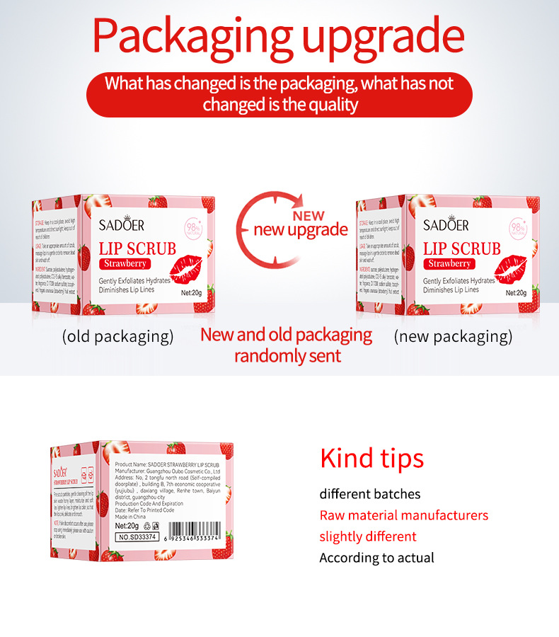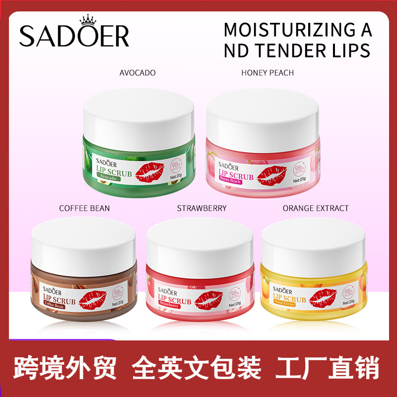 跨境现货唇部磨砂膏系列 SADOER保湿补水唇部磨砂膏 外贸工厂直销
