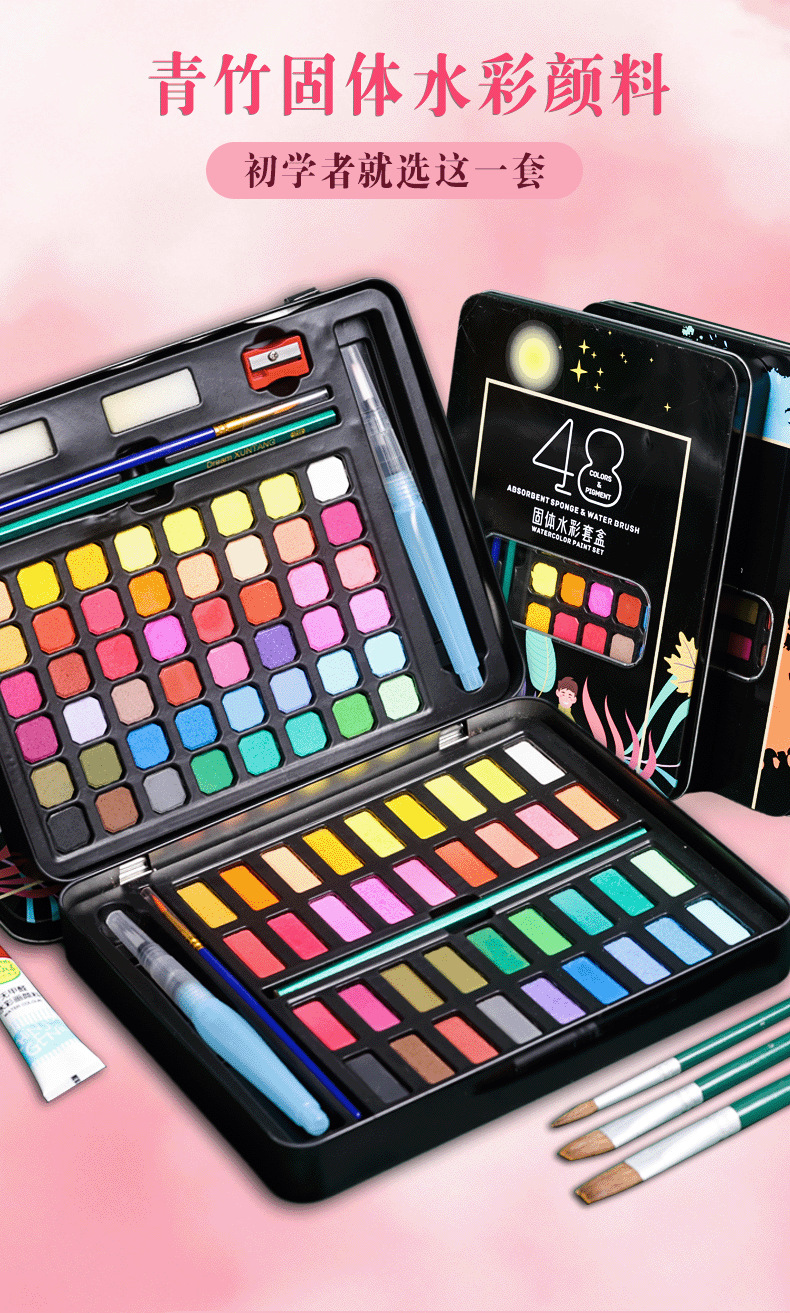 青竹固体水彩絵の具36色48色初心者絵画道具携帯セット子供絵画フルセット