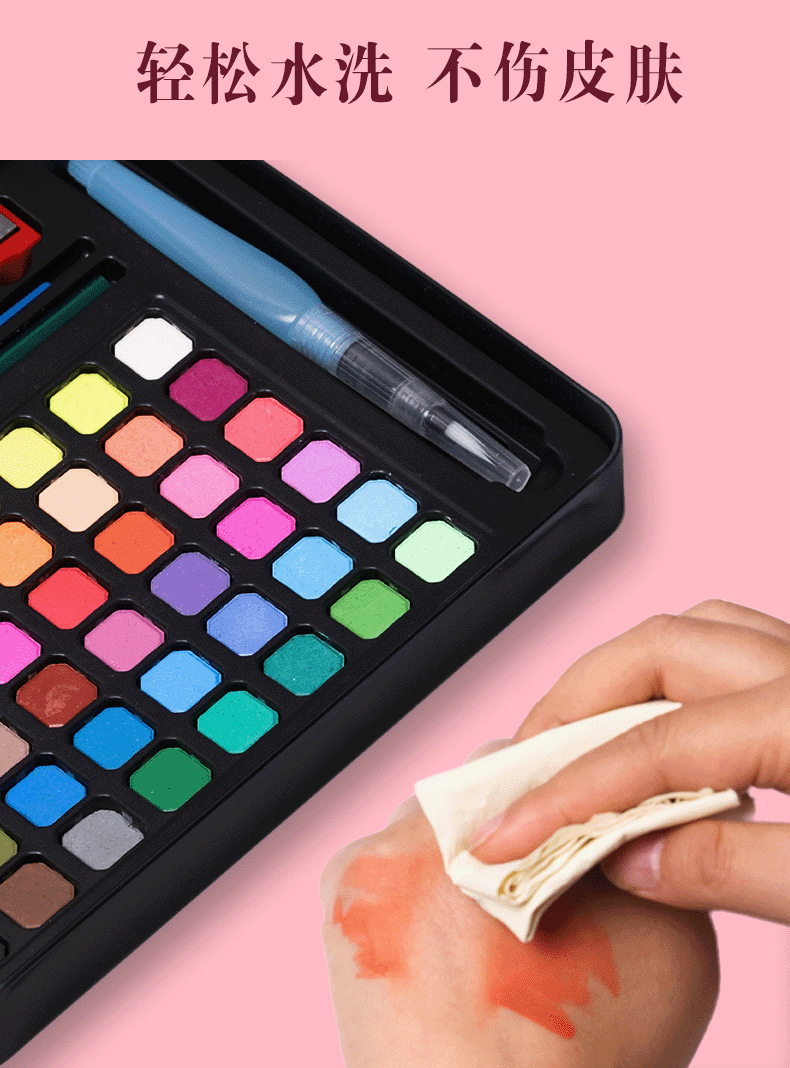 48色36色固体水彩颜料初学者水彩画工具全套中小学美术专用绘画笔