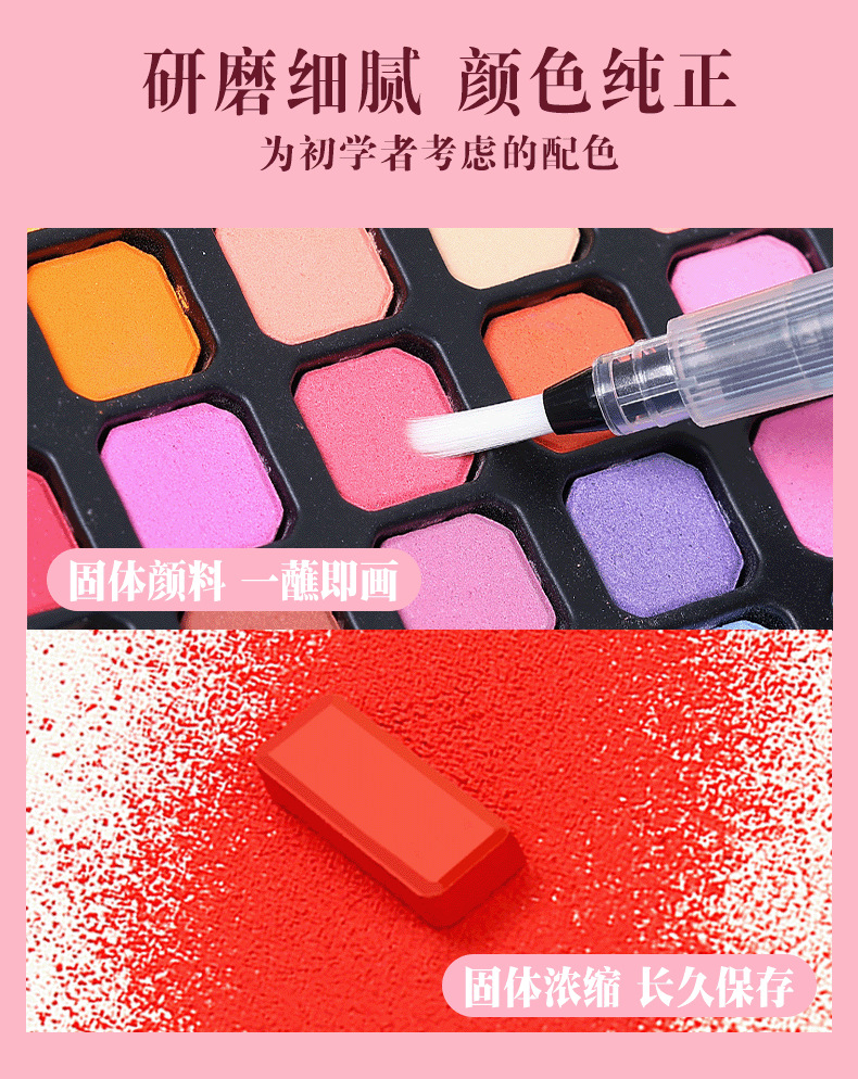 彩色画水彩画固体敦煌珠光金粉水粉水彩絵の具画セット24色美術専用