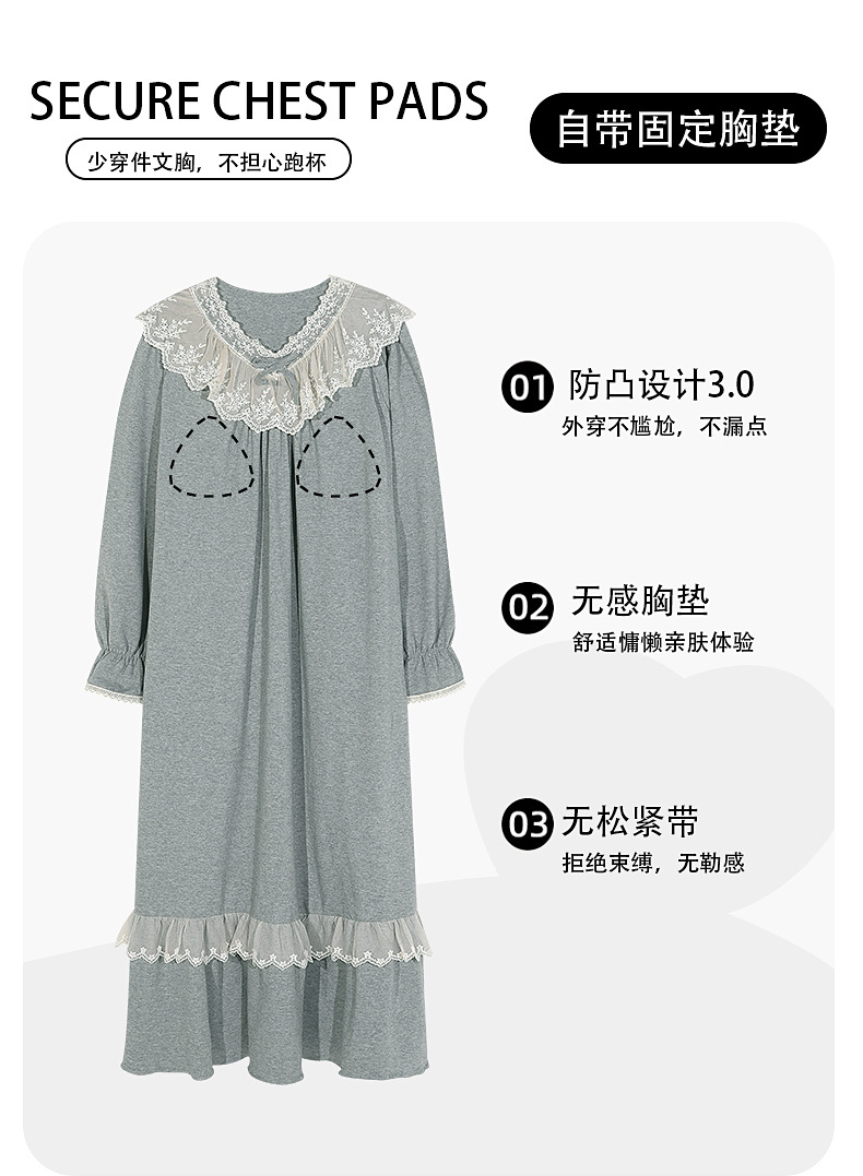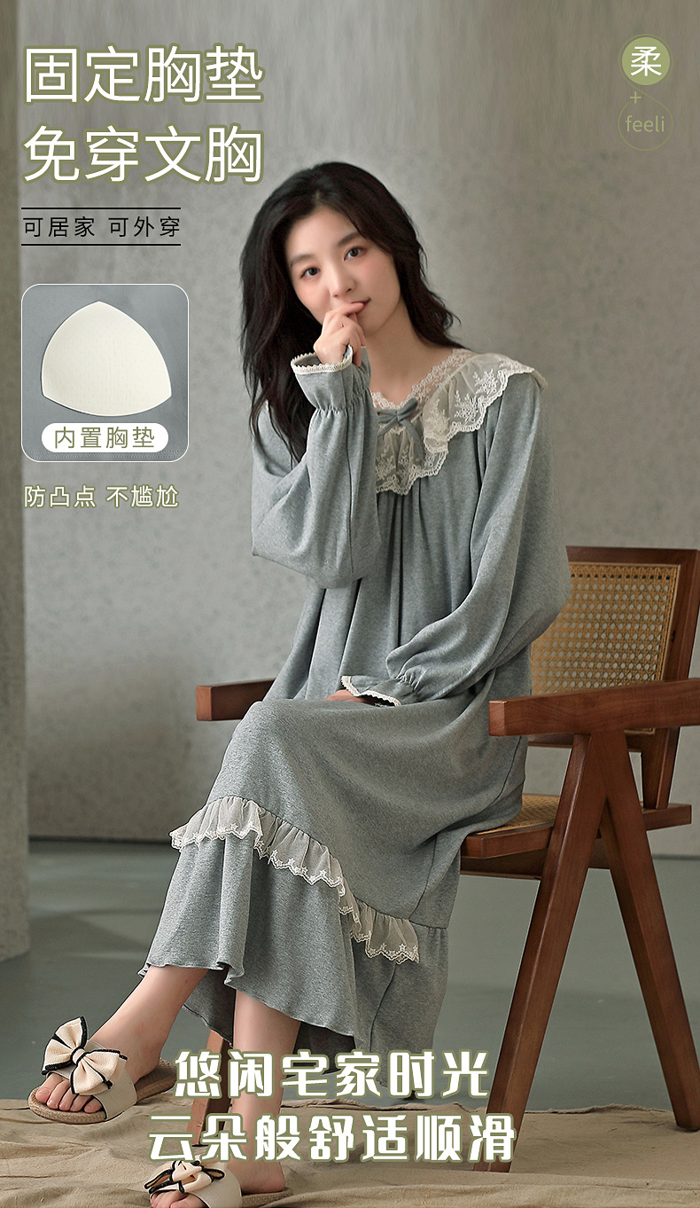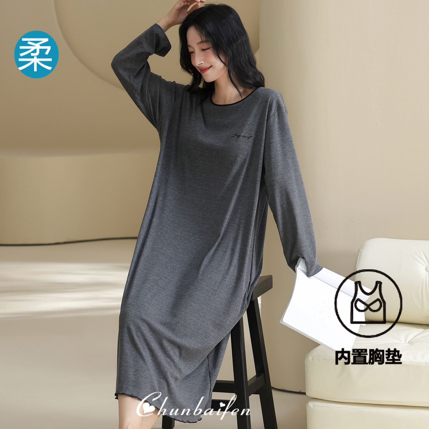 带胸垫睡裙女秋冬季纯棉长袖休闲套头家居服2025年新款可外穿睡衣