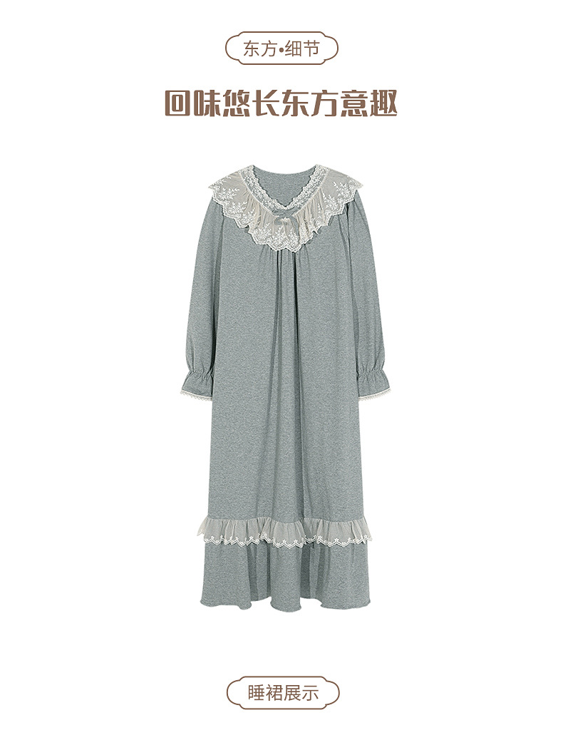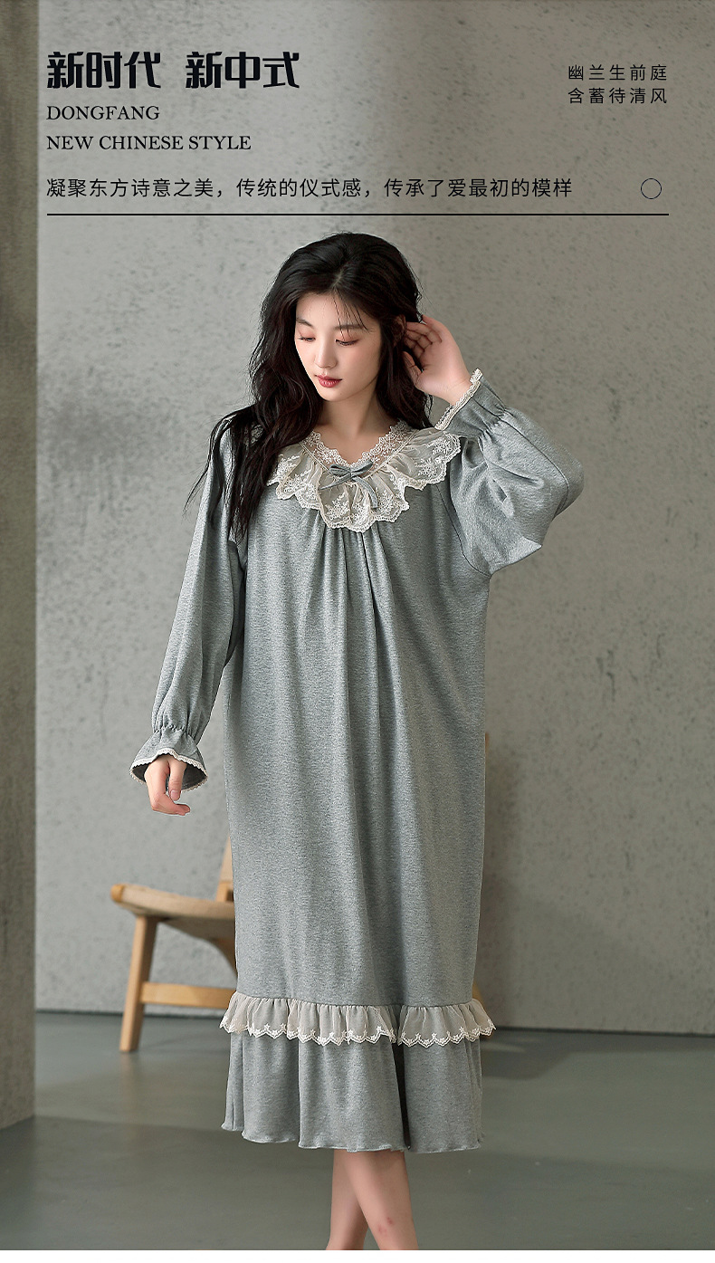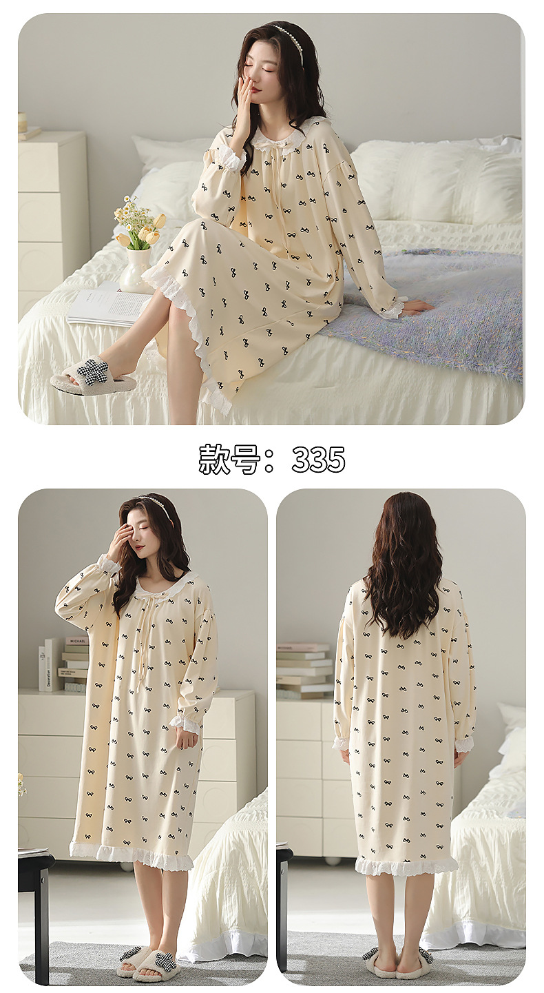 秋季新款长袖纯棉睡衣中长款舒适睡裙女士甜美可爱风家居服可外穿