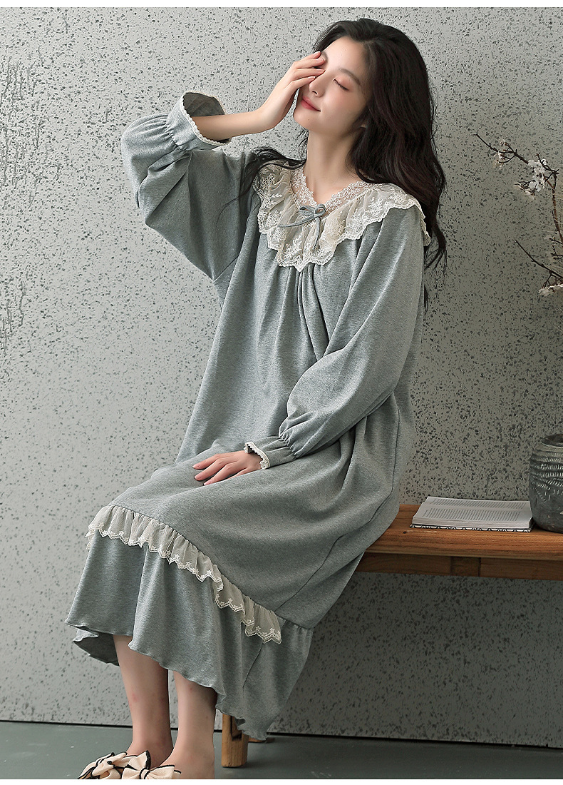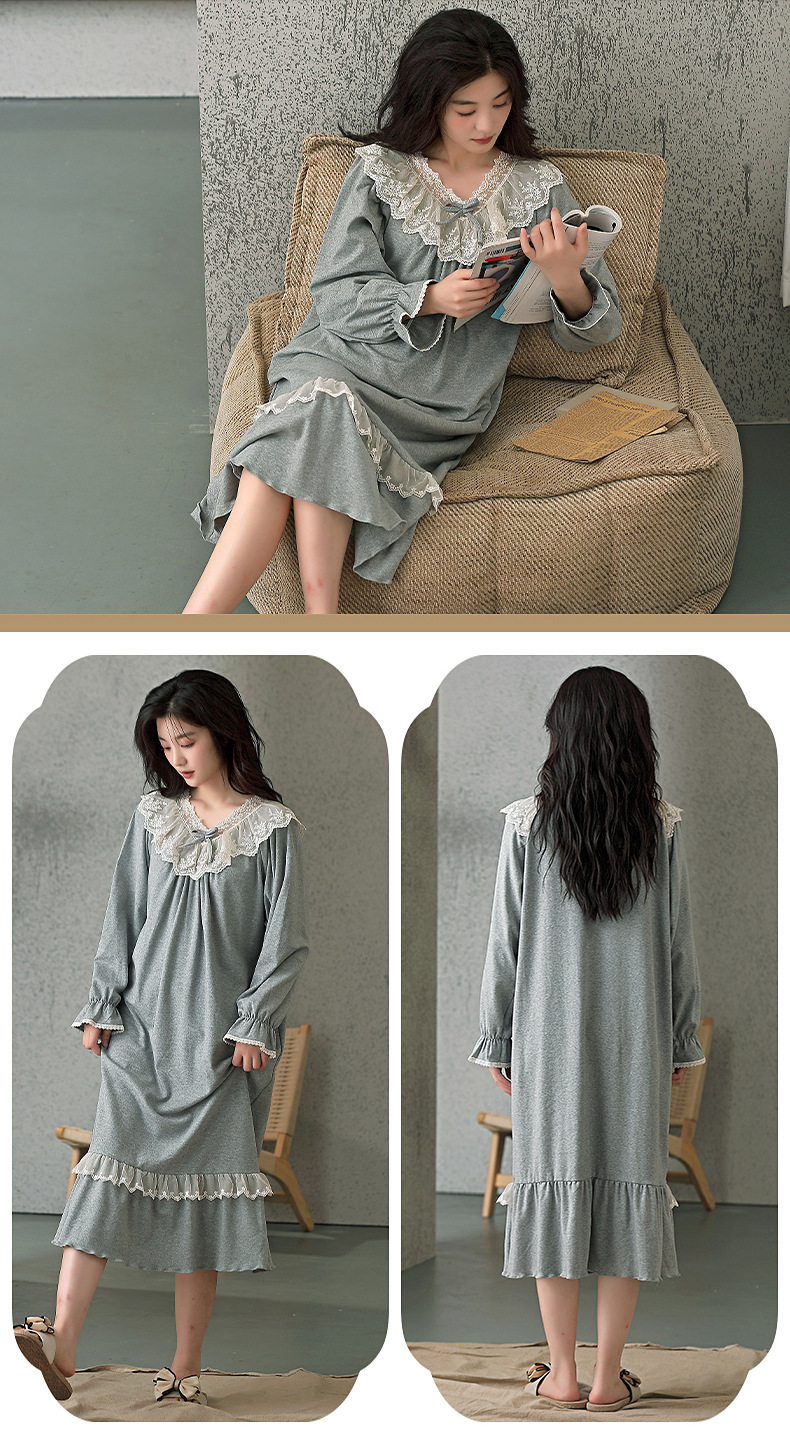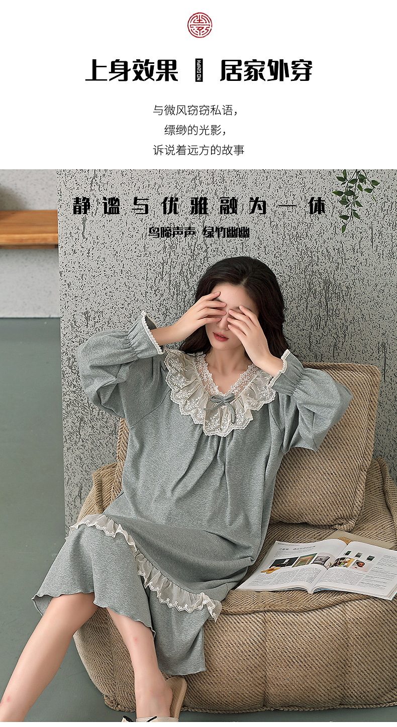 睡裙女秋天纯棉长袖宽松休闲甜美长款睡衣可外穿家居服裙子春秋款