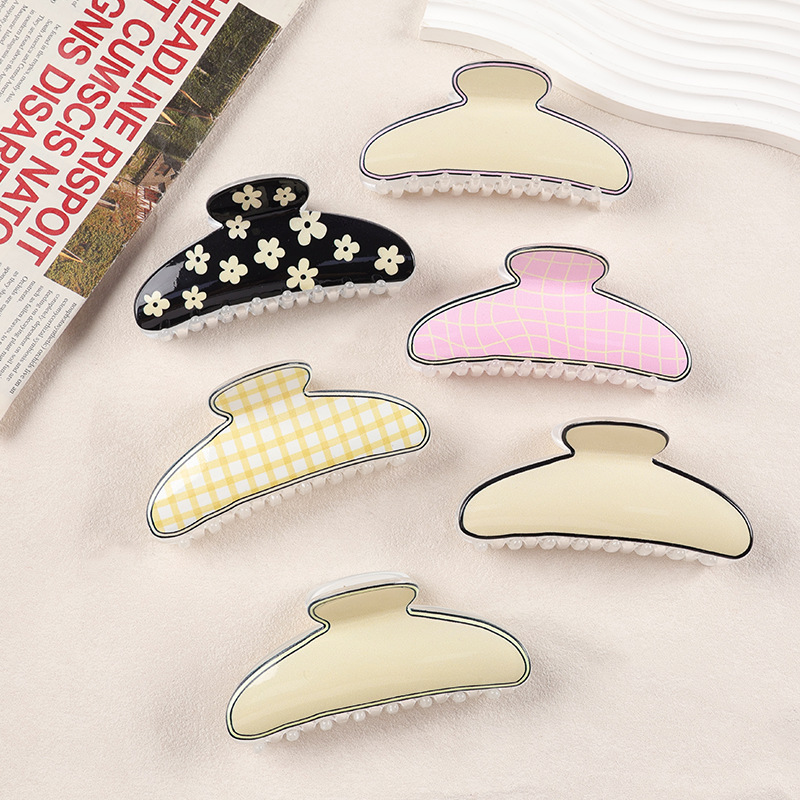 2025欧美大号格子抓夹跨境可爱印花女生格纹发抓盘发鲨鱼夹发量多
