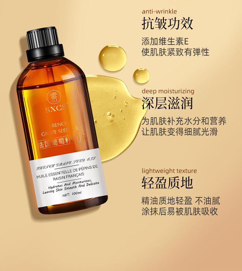 素秀臣氏法国葡萄籽精油面部护肤以油护肤保湿抗皱紧致精华油厂家