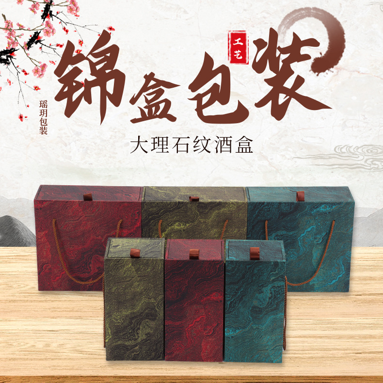 大理石纹酒盒 国风双瓶装白酒外包装盒 通用高档酒盒手提式锦盒