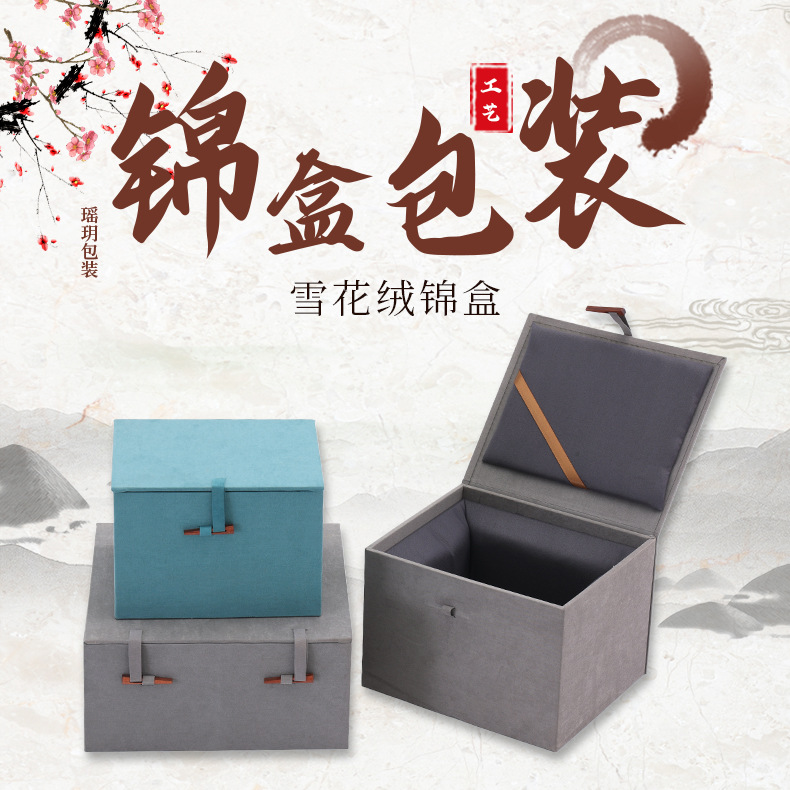 雪花绒锦盒套壶包装盒紫砂壶瓷器礼品盒雪花绒布印章铜包装盒锦盒