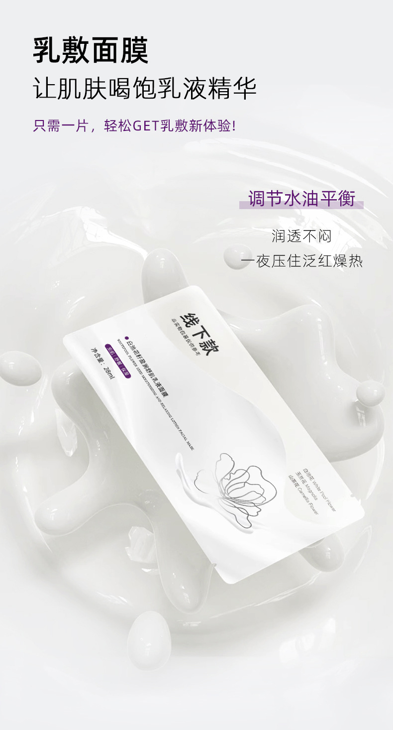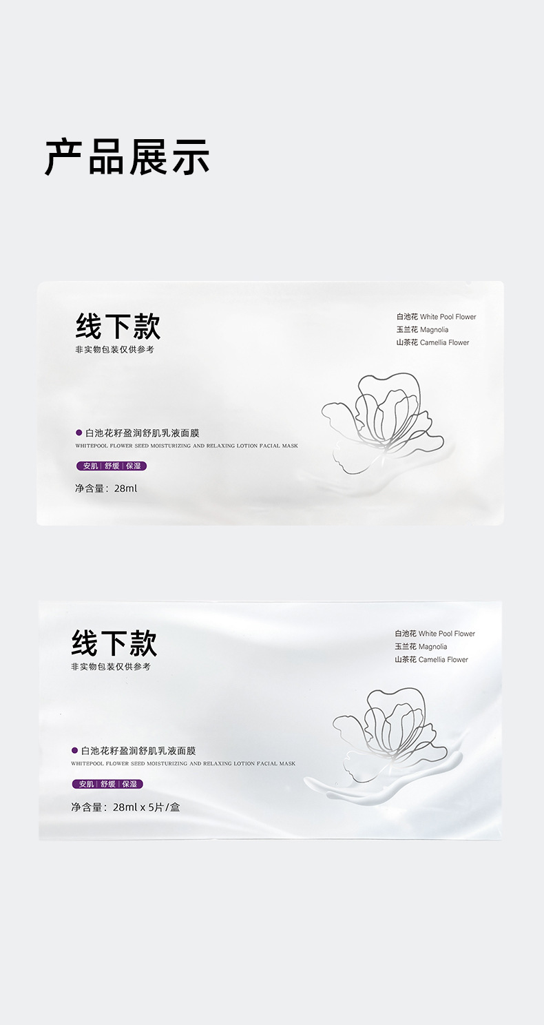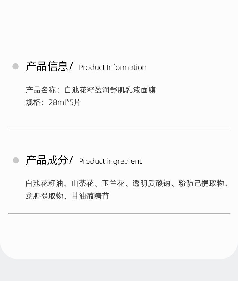 产品规格 白池花籽盈润舒肌乳液面膜25ml*5片/1盒(补水舒缓)