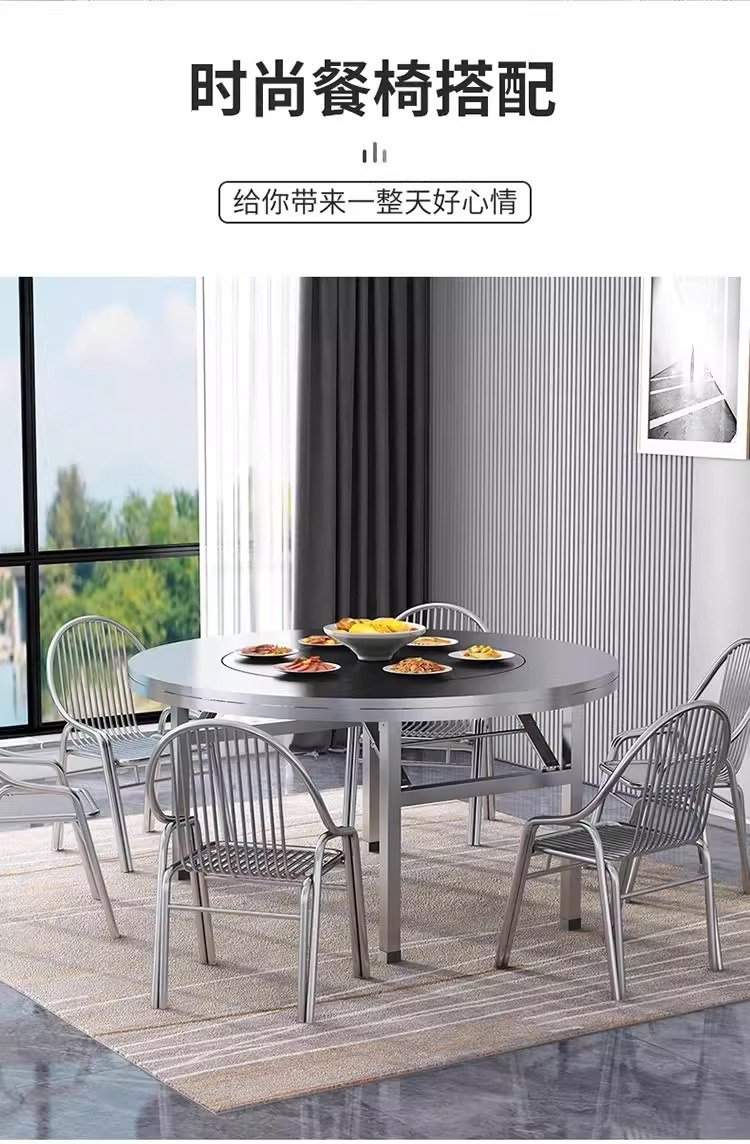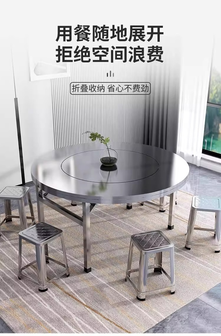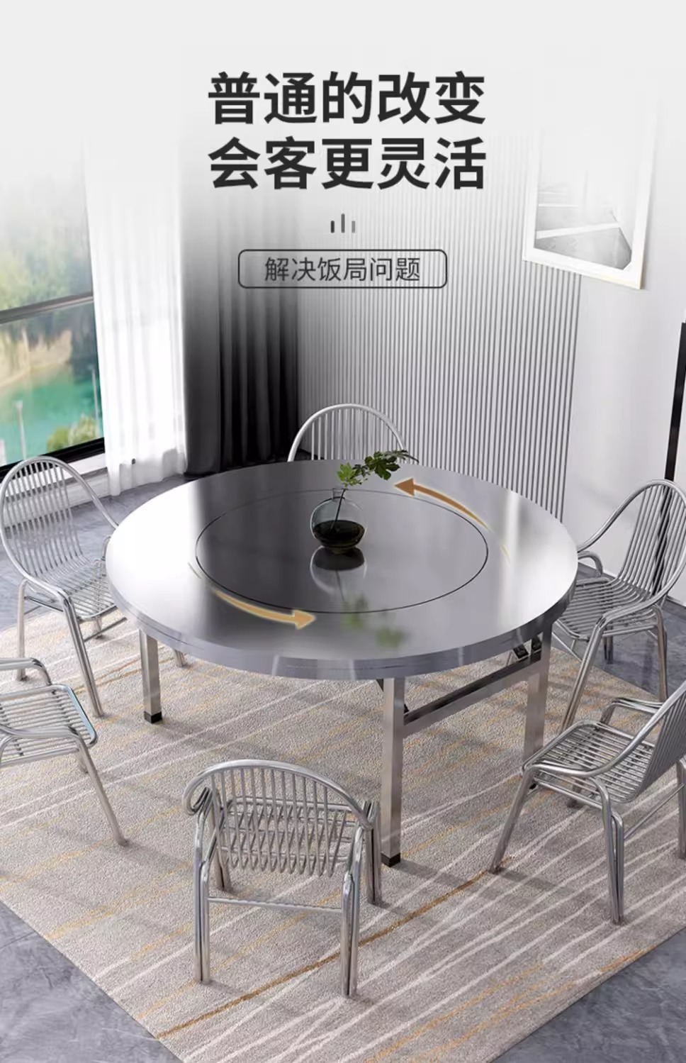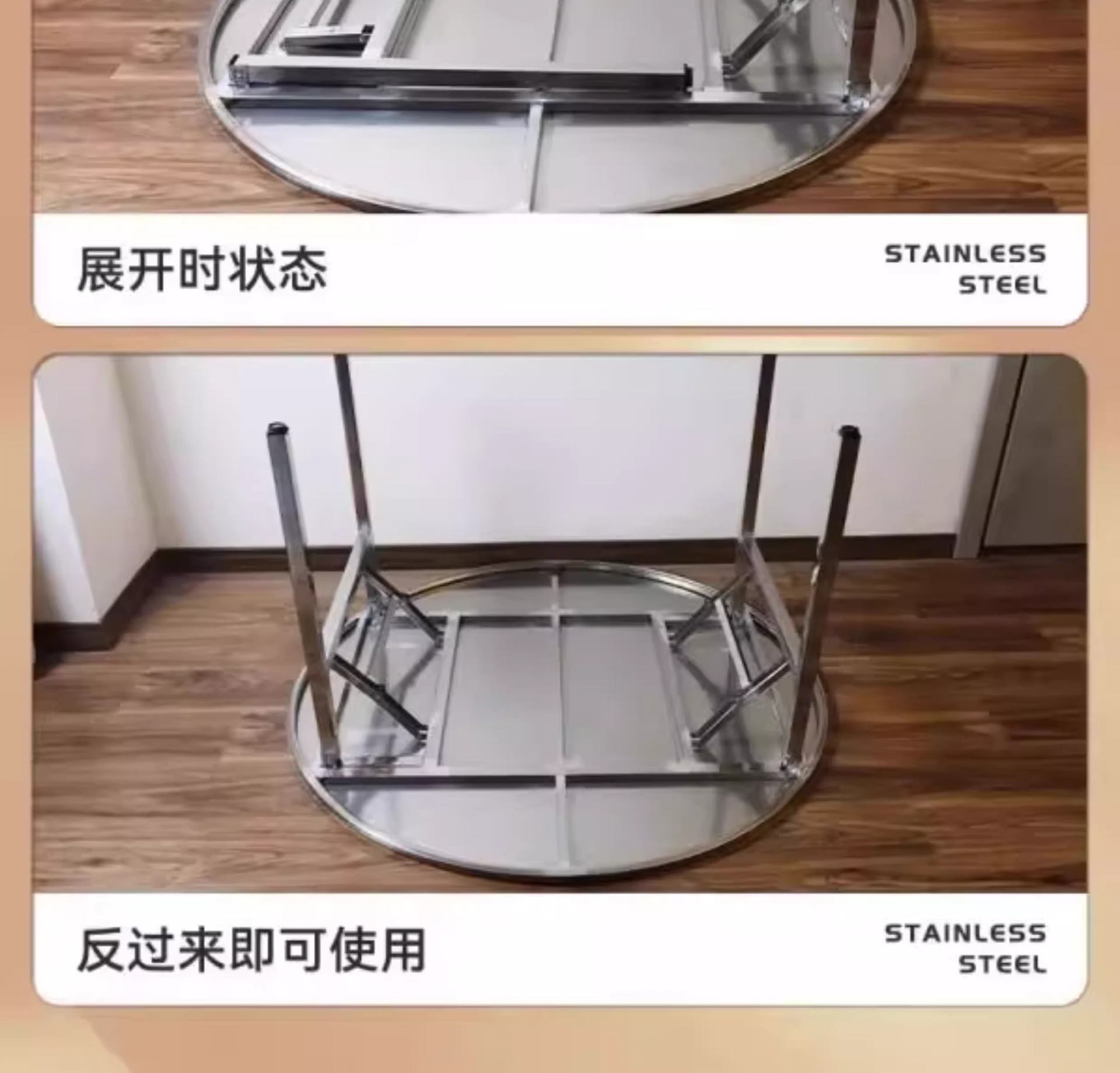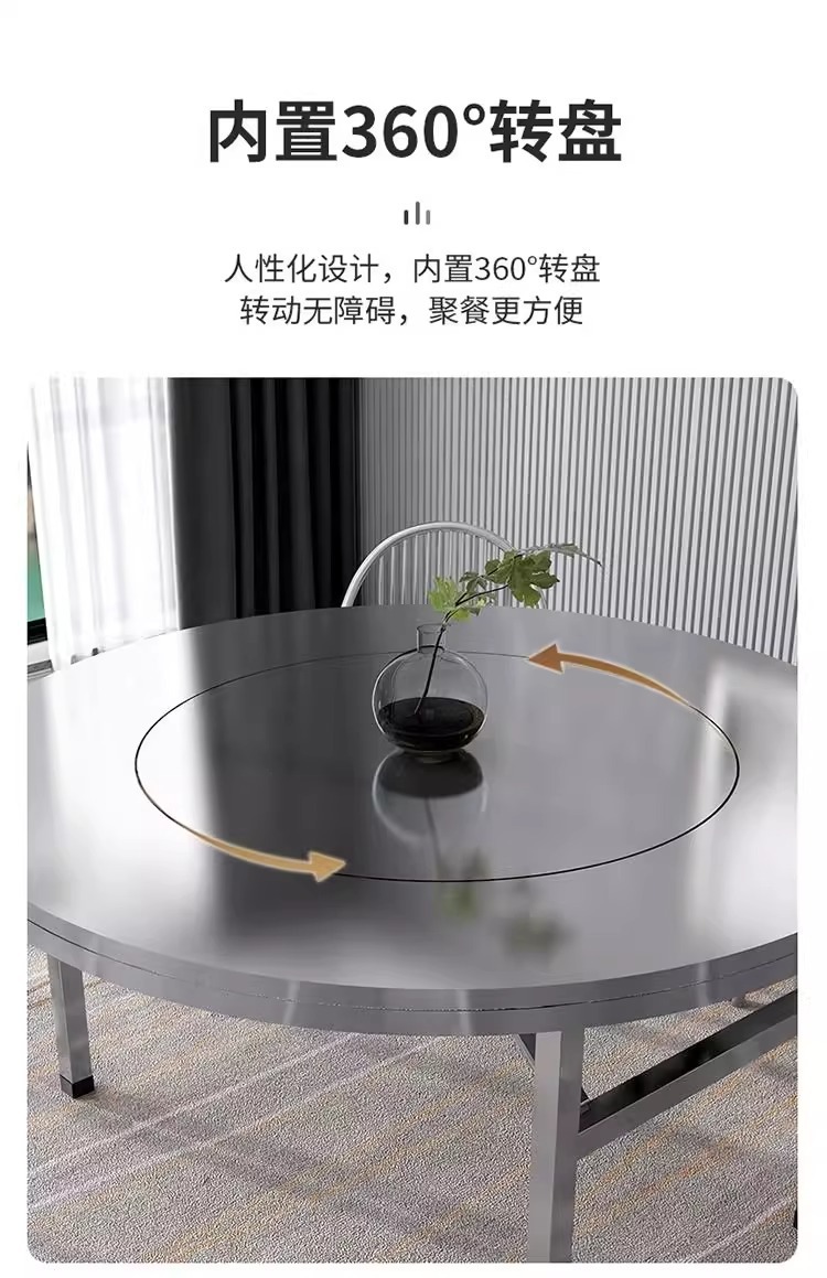 特厚不锈钢圆桌内置转盘折叠桌圆桌带转盘酒店流动酒席不锈钢圆桌