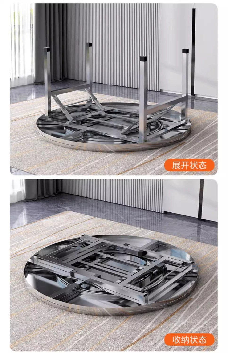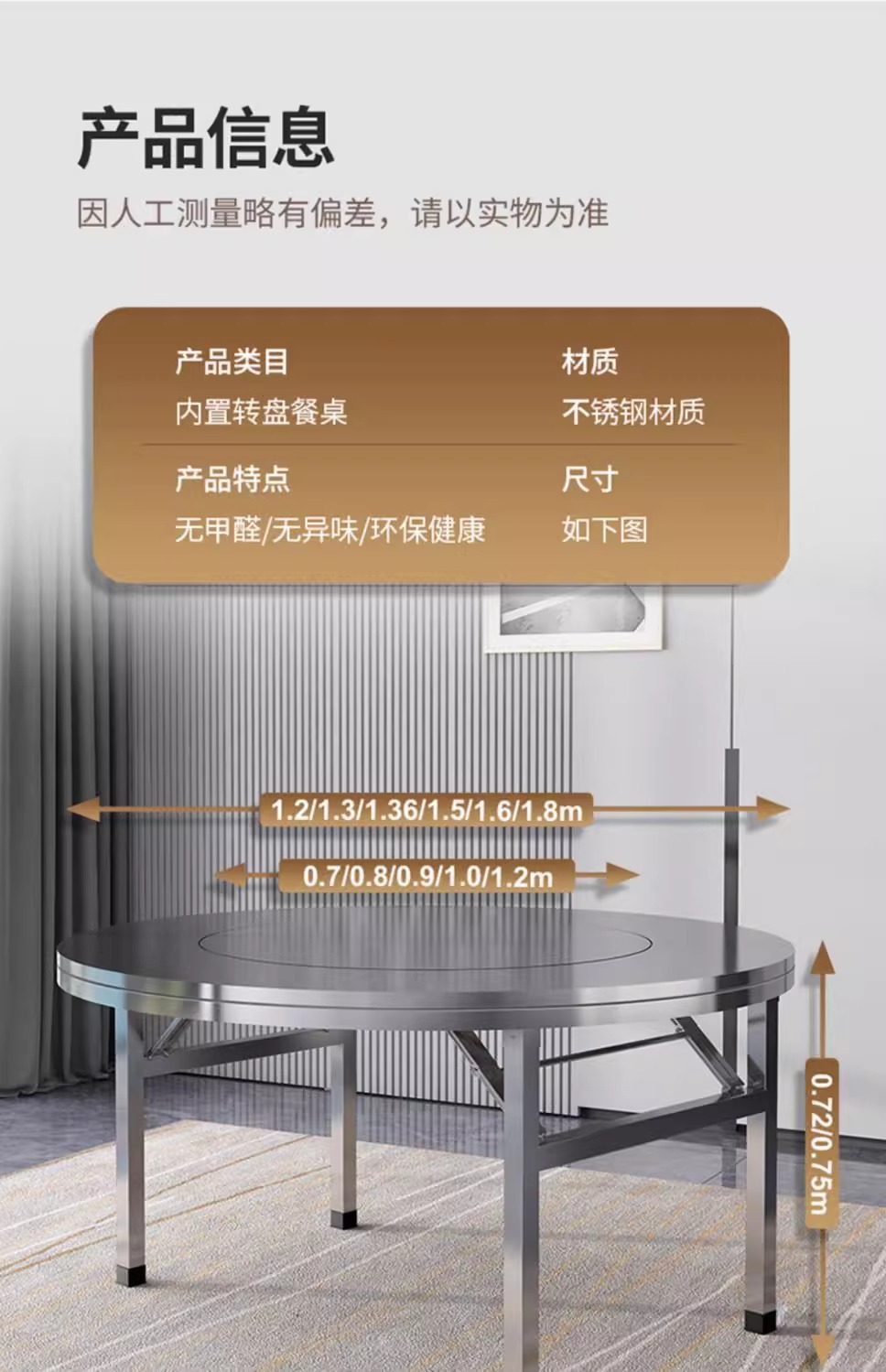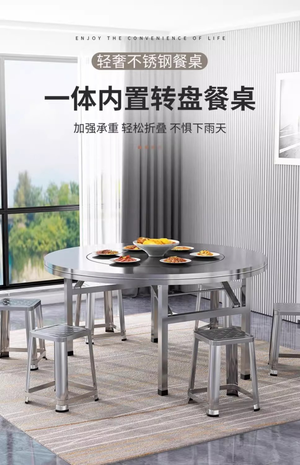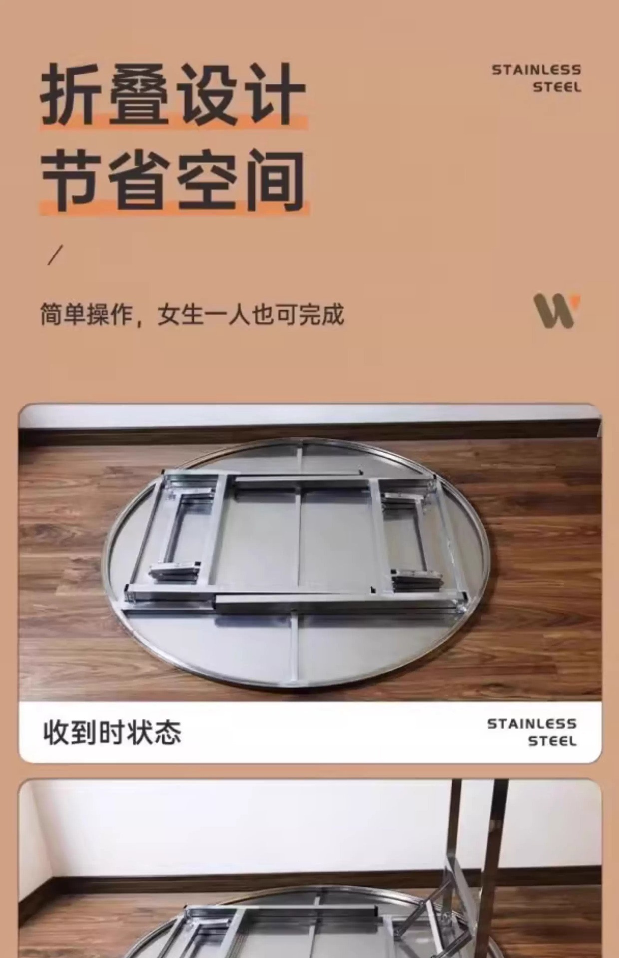 特厚不锈钢圆桌内置转盘折叠桌圆桌带转盘酒店流动酒席不锈钢圆桌