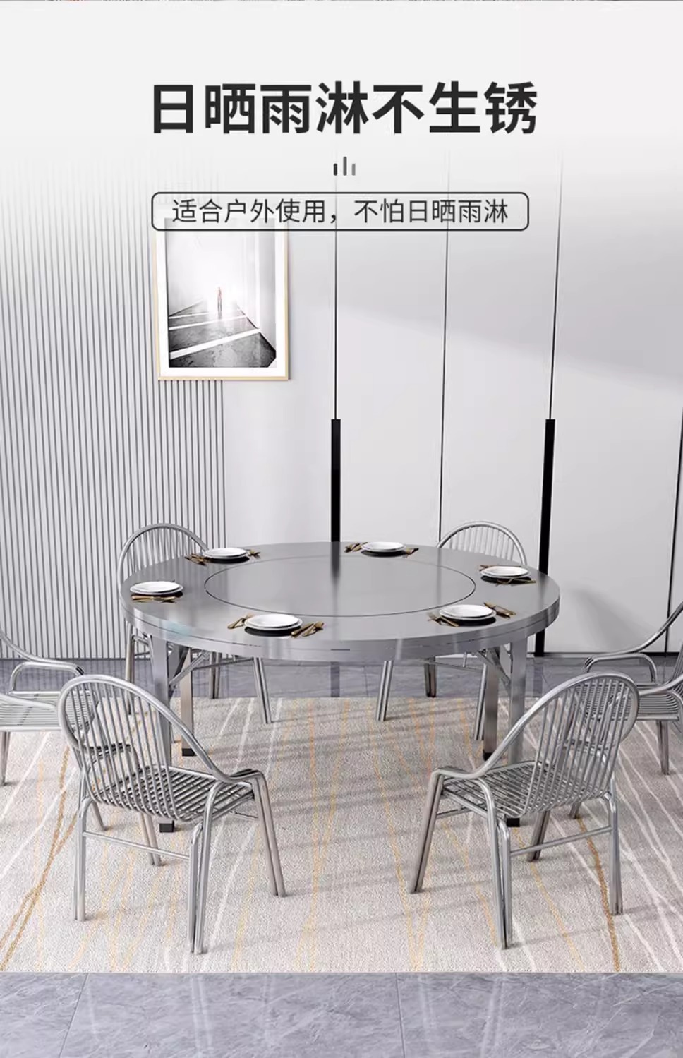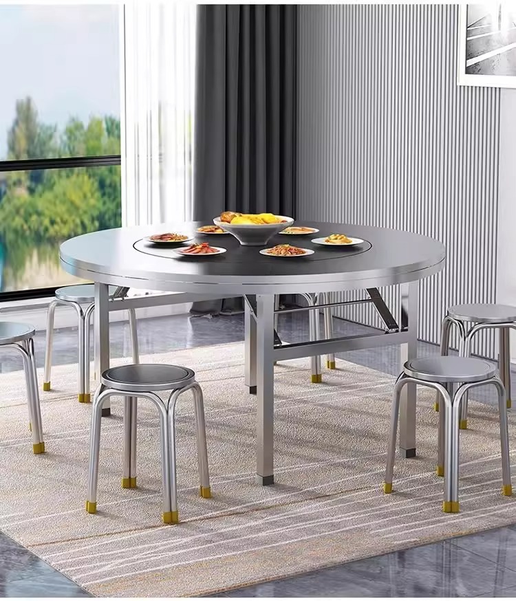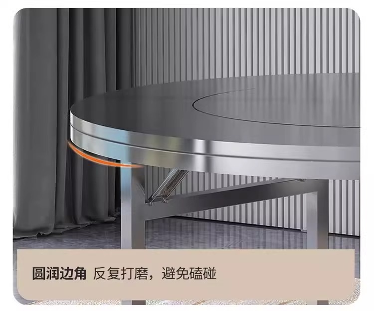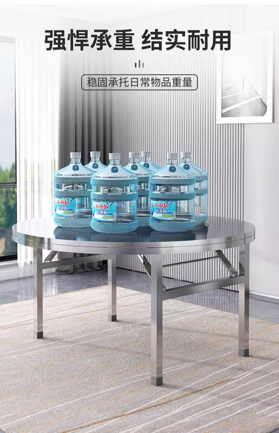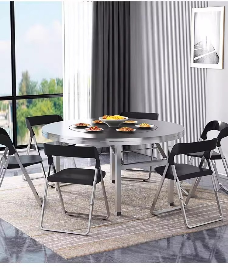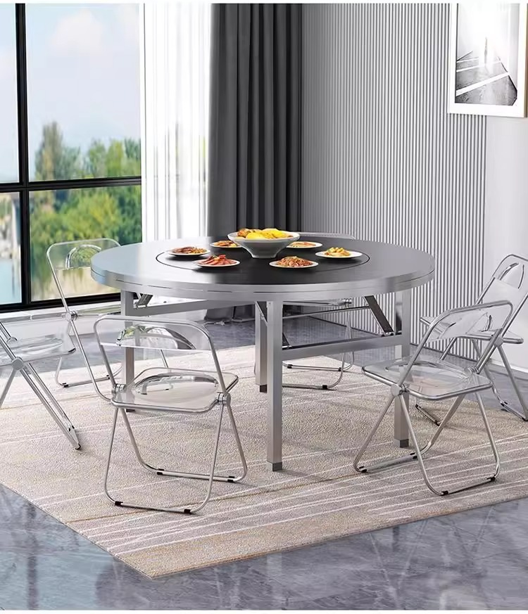 特厚不锈钢圆桌内置转盘折叠桌圆桌带转盘酒店流动酒席不锈钢圆桌