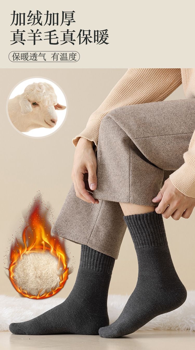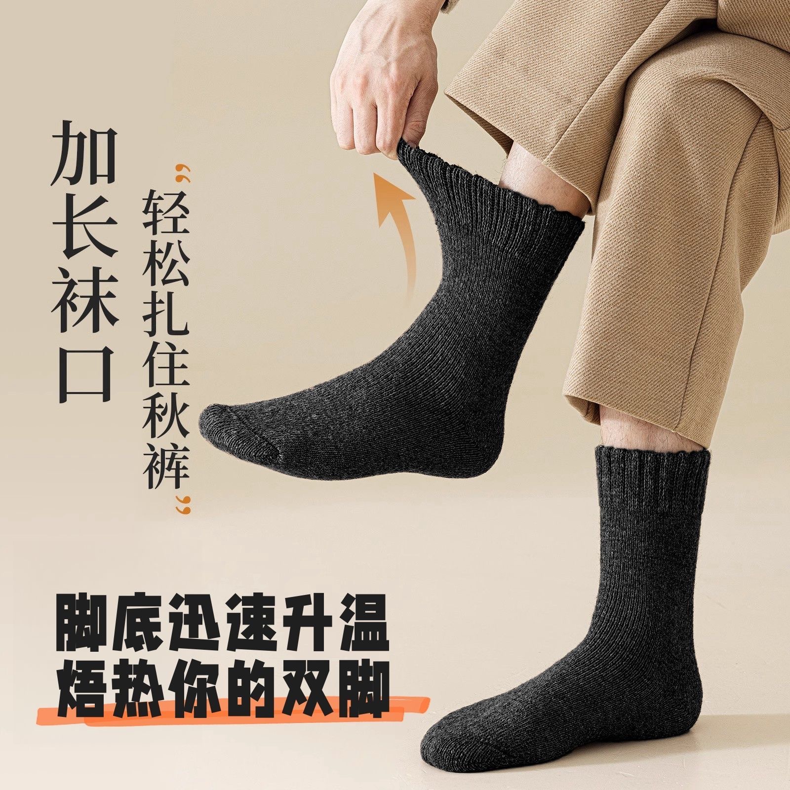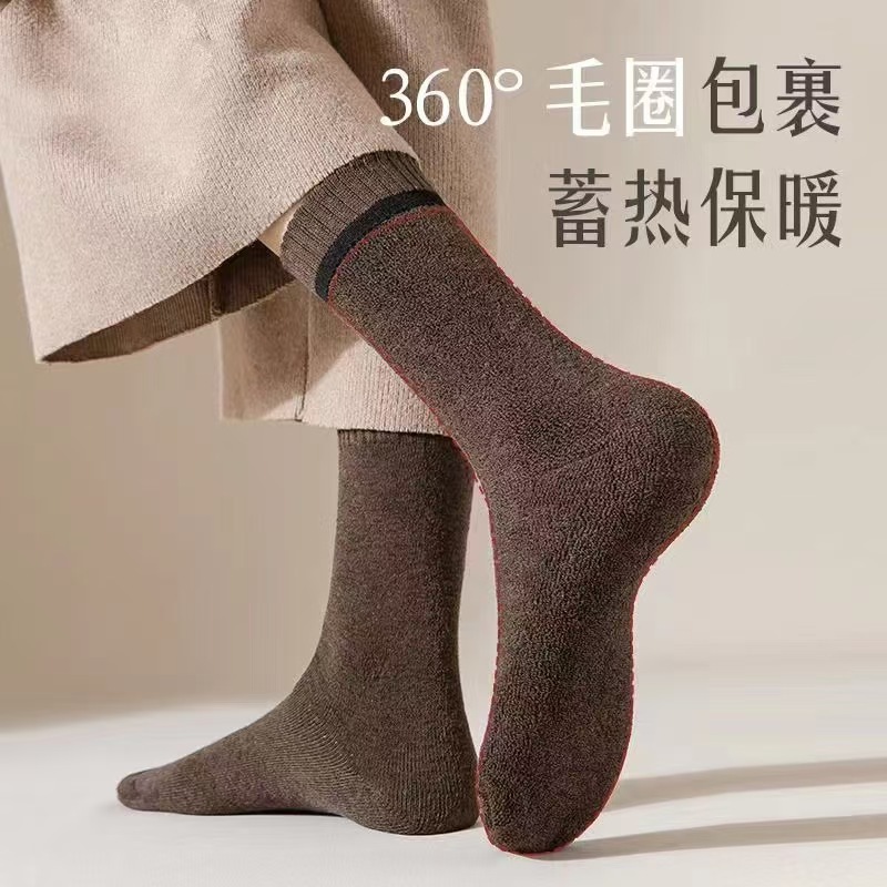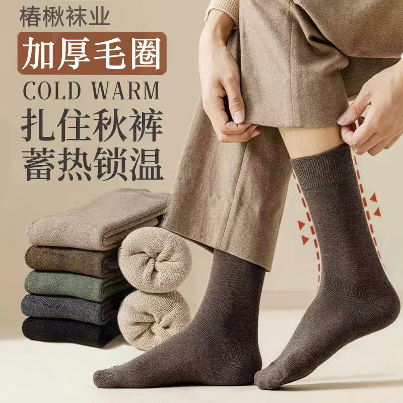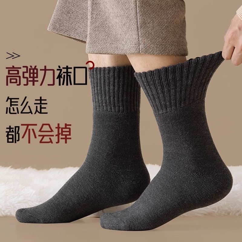 袜子男士加绒加厚高罗口毛圈袜抗寒保暖秋冬毛圈长袜冬款男士中筒