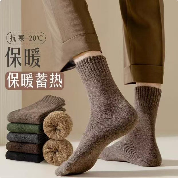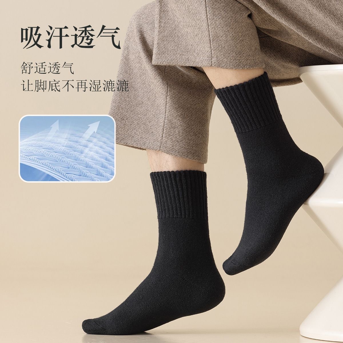 跨境袜子男秋冬季厚男士中筒运动吸汗保暖商务百搭袜子男士中筒袜