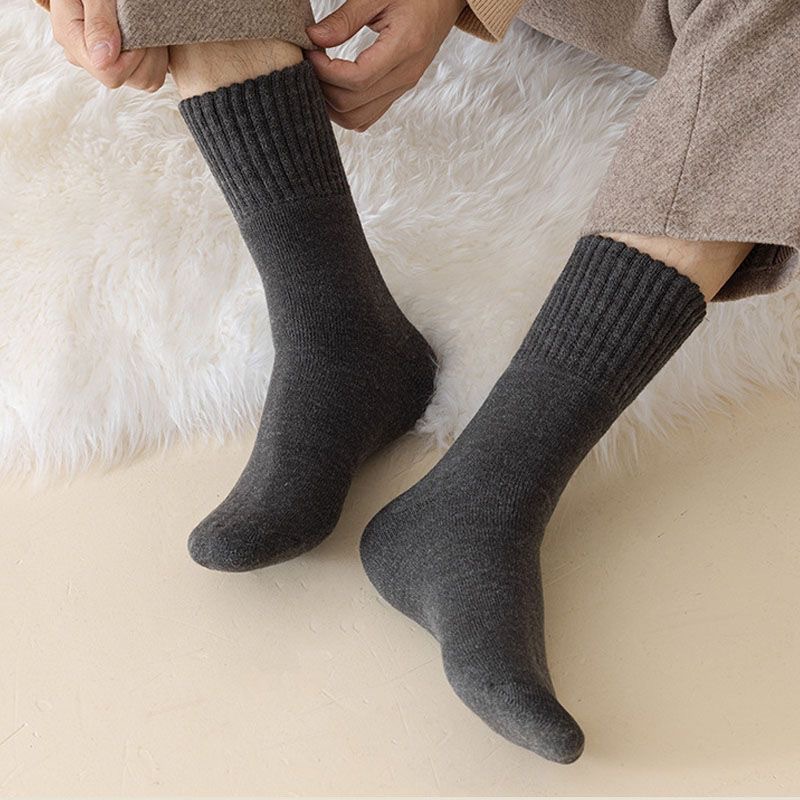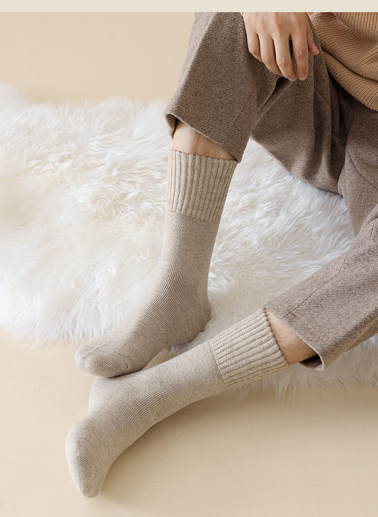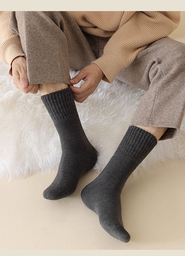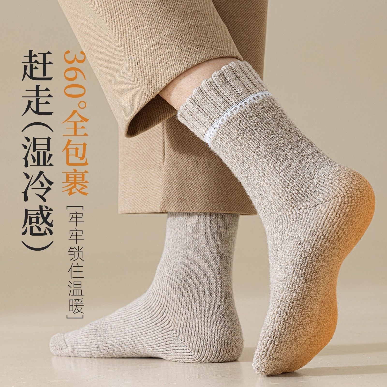 男士袜子秋冬季加厚保暖加绒长筒毛巾袜复古百搭纯色中筒袜毛圈袜