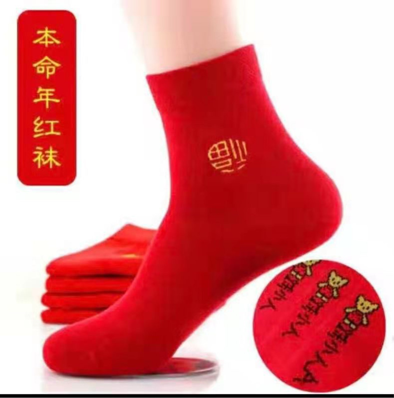 大紅靴下中筒秋冬保温靴下招財紅靴下本命年男女新年おめでたい結婚赤い靴下