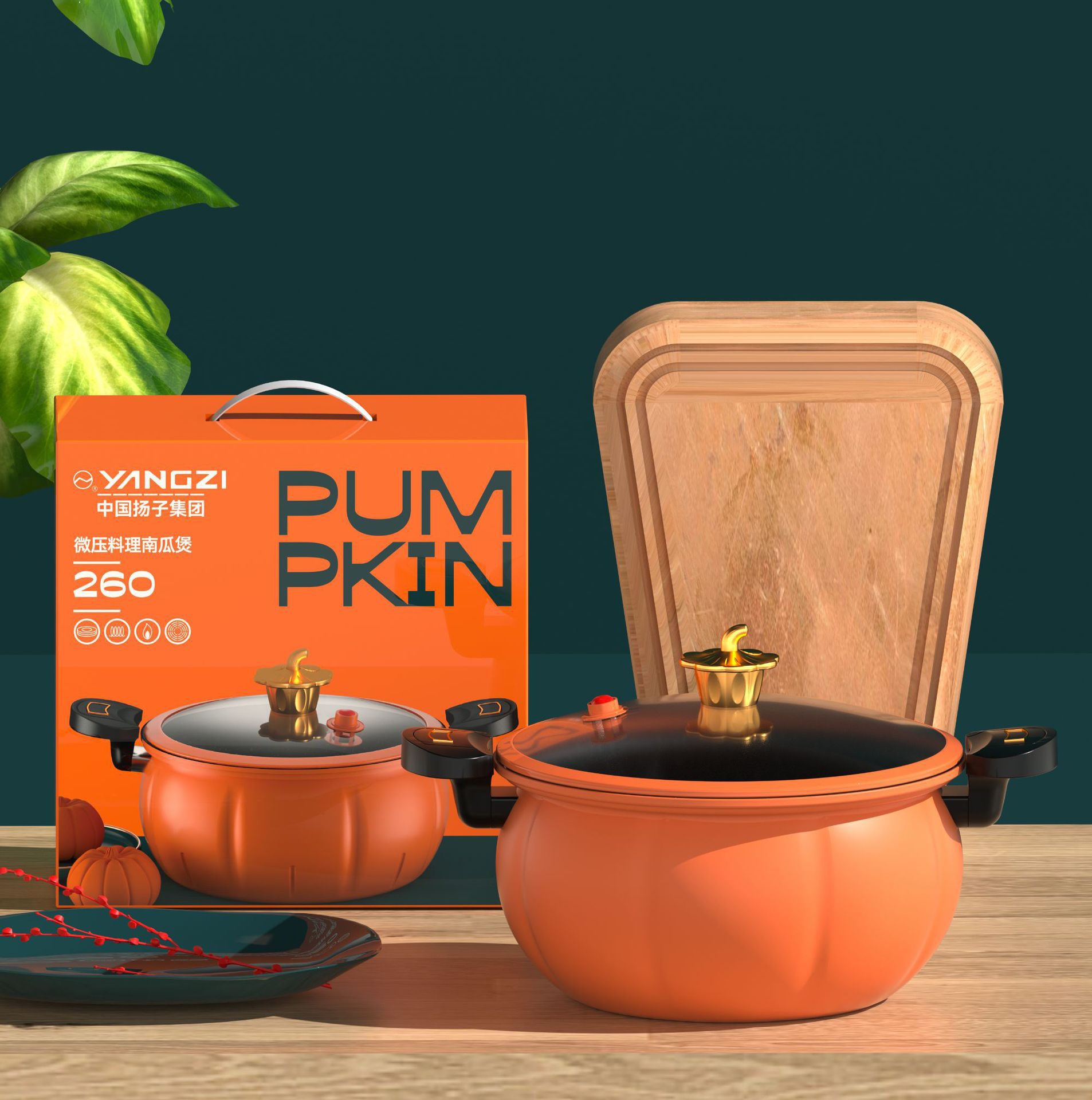 扬子南瓜微压锅不粘锅麦饭石压力锅网红南瓜焖烧料理锅家用煲汤锅