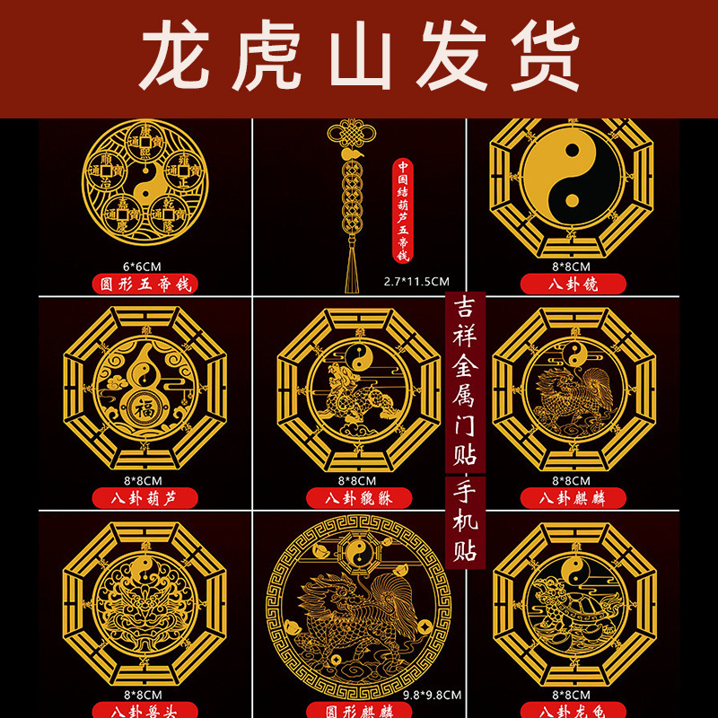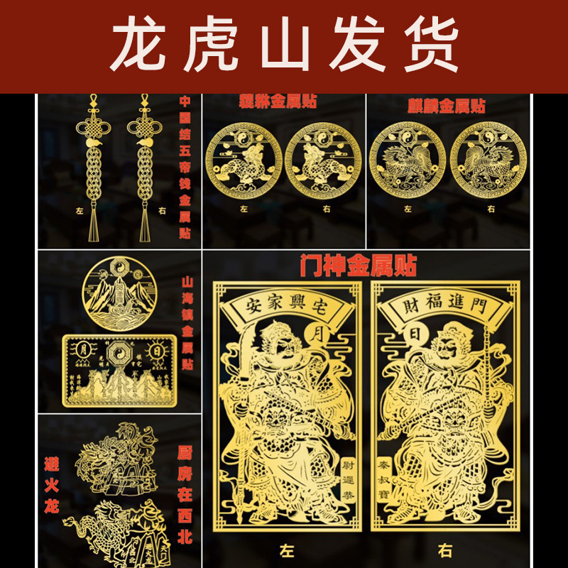 龍湖山金属ドアステッカー中国結び五帝マネードア神キリン貔貅避難火龍山海鎮家の装飾ステッカー
