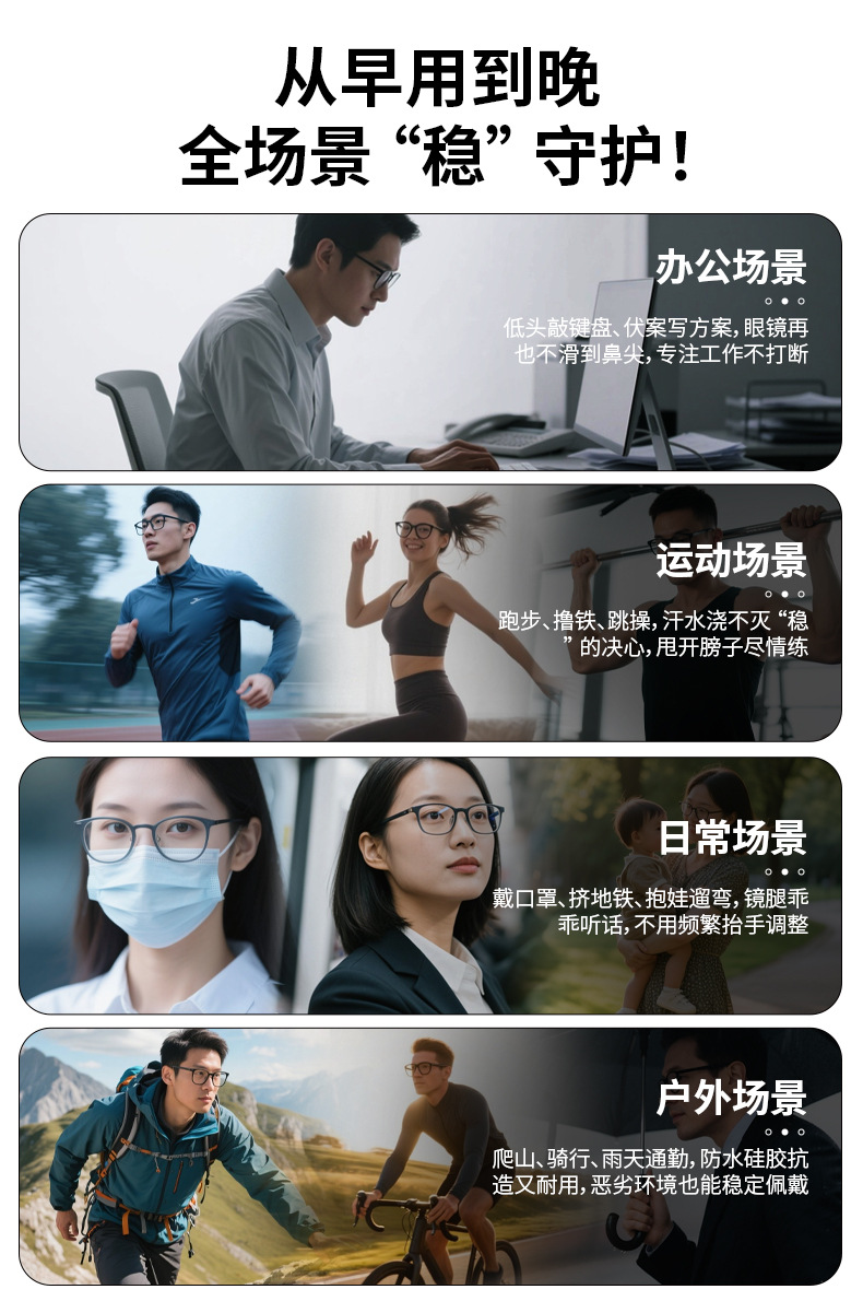 眼鏡滑り止め防止運動トレーニングランニング固定眼鏡脱落防止眼鏡フレームシリコン眼鏡ロープ共通