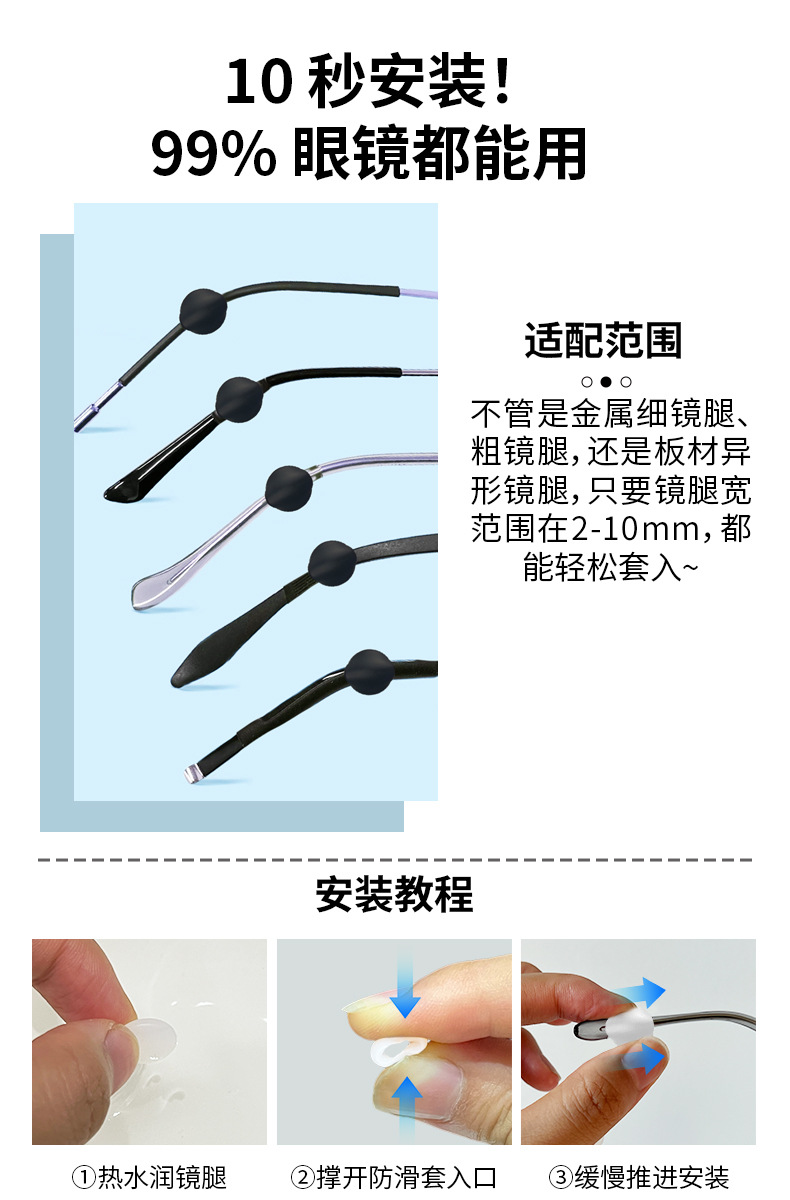 眼镜套管防滑套防疼超软硅胶套 防脱落神器耳托眼睛架 框腿脚套