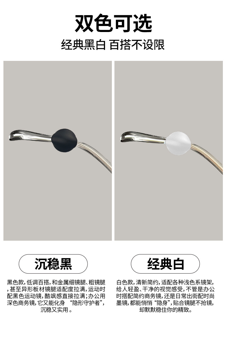 眼镜配件软硅胶眼镜防滑套耳勾黑白色小号耳挂眼镜防脱落运动防掉